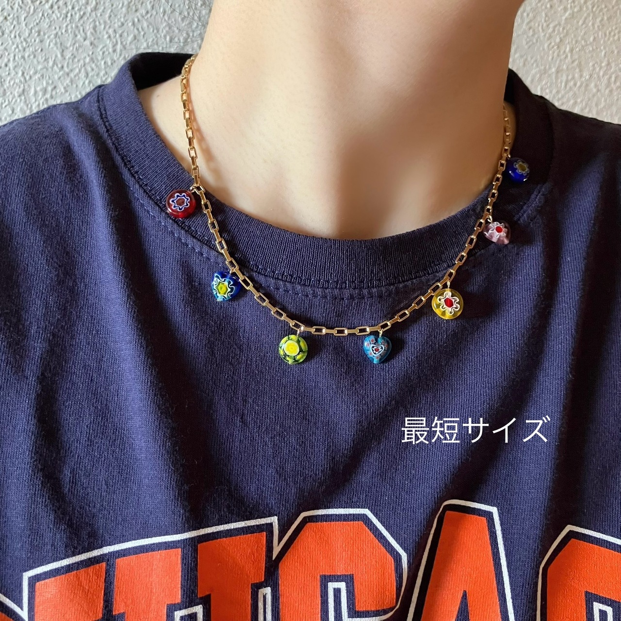 このネックレスは全て違う柄のビーズになっています。