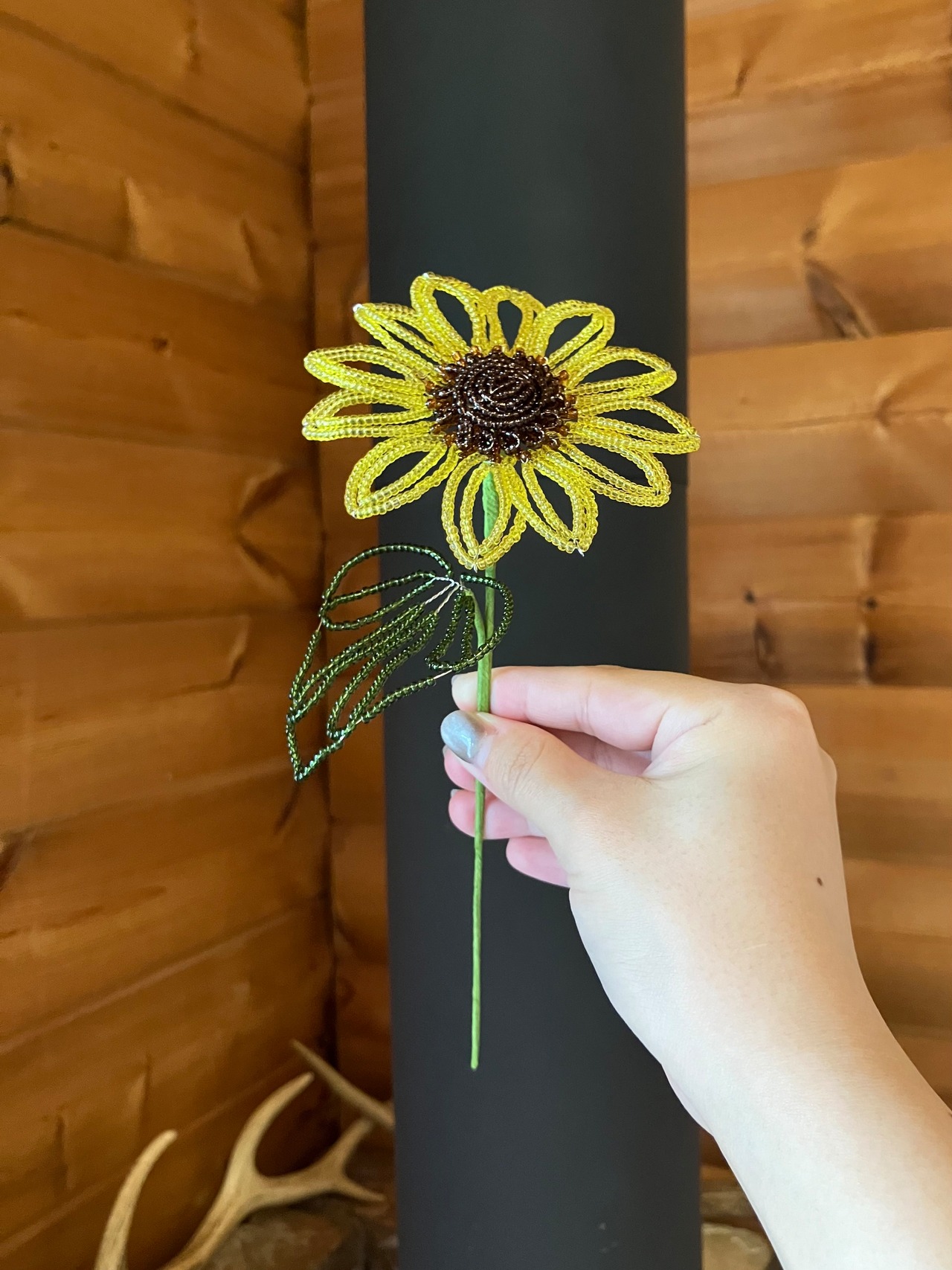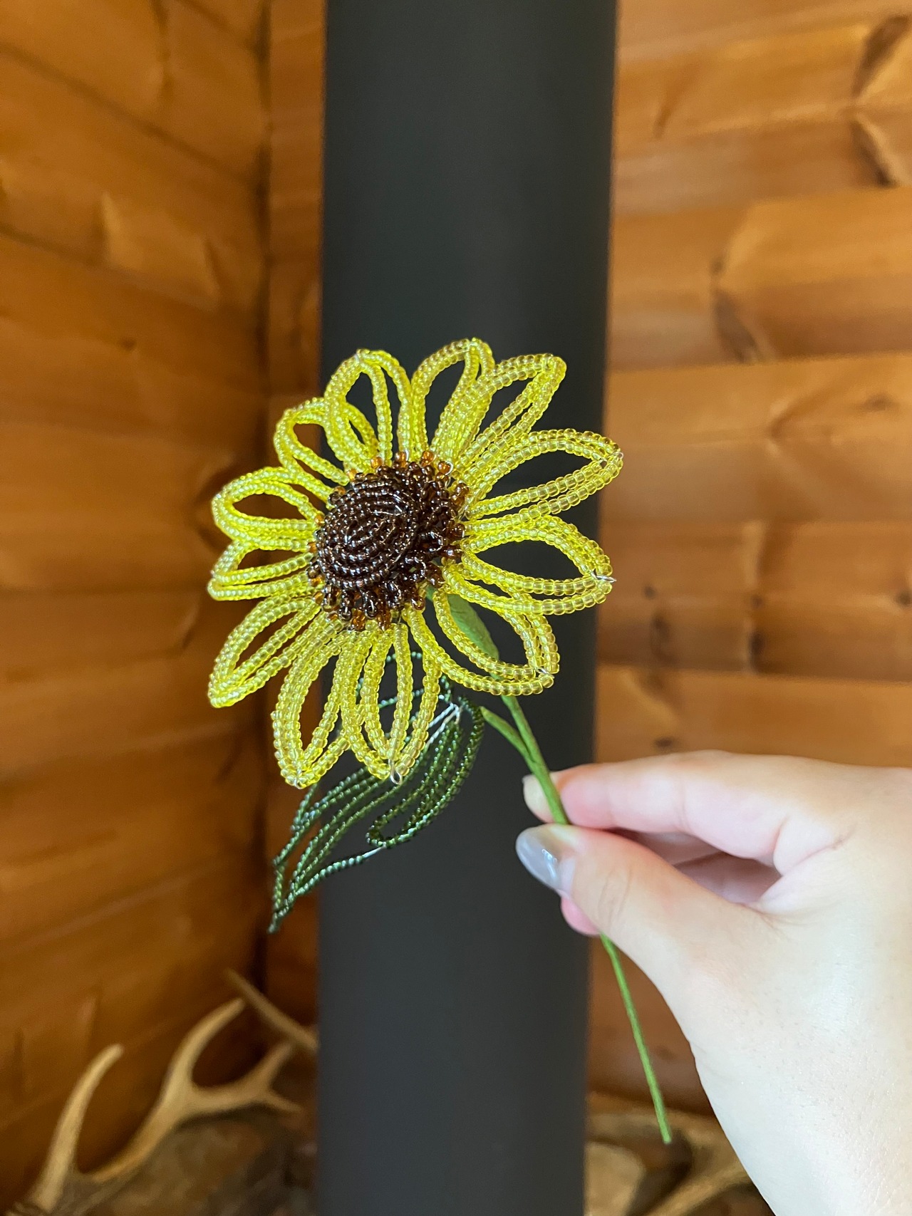 クリアなビーズを使ったひまわりのビーズフラワー。