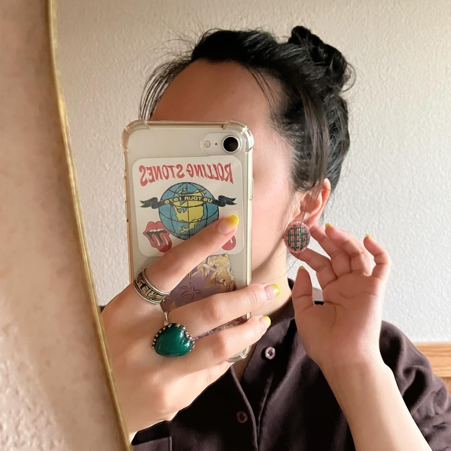まるい耳飾り、真鍮メッキのネジばね式イヤリングです。