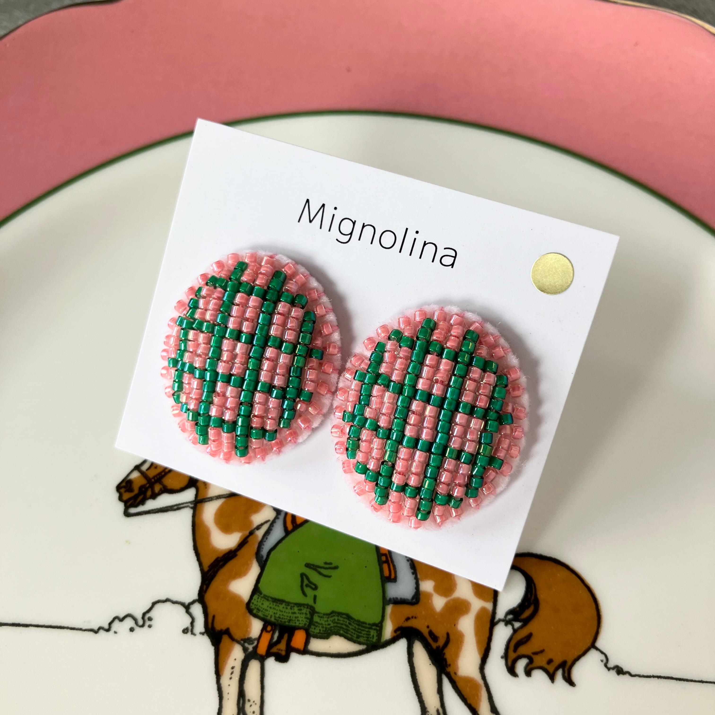 透け感のあるピンクとグリーンのチェック柄。