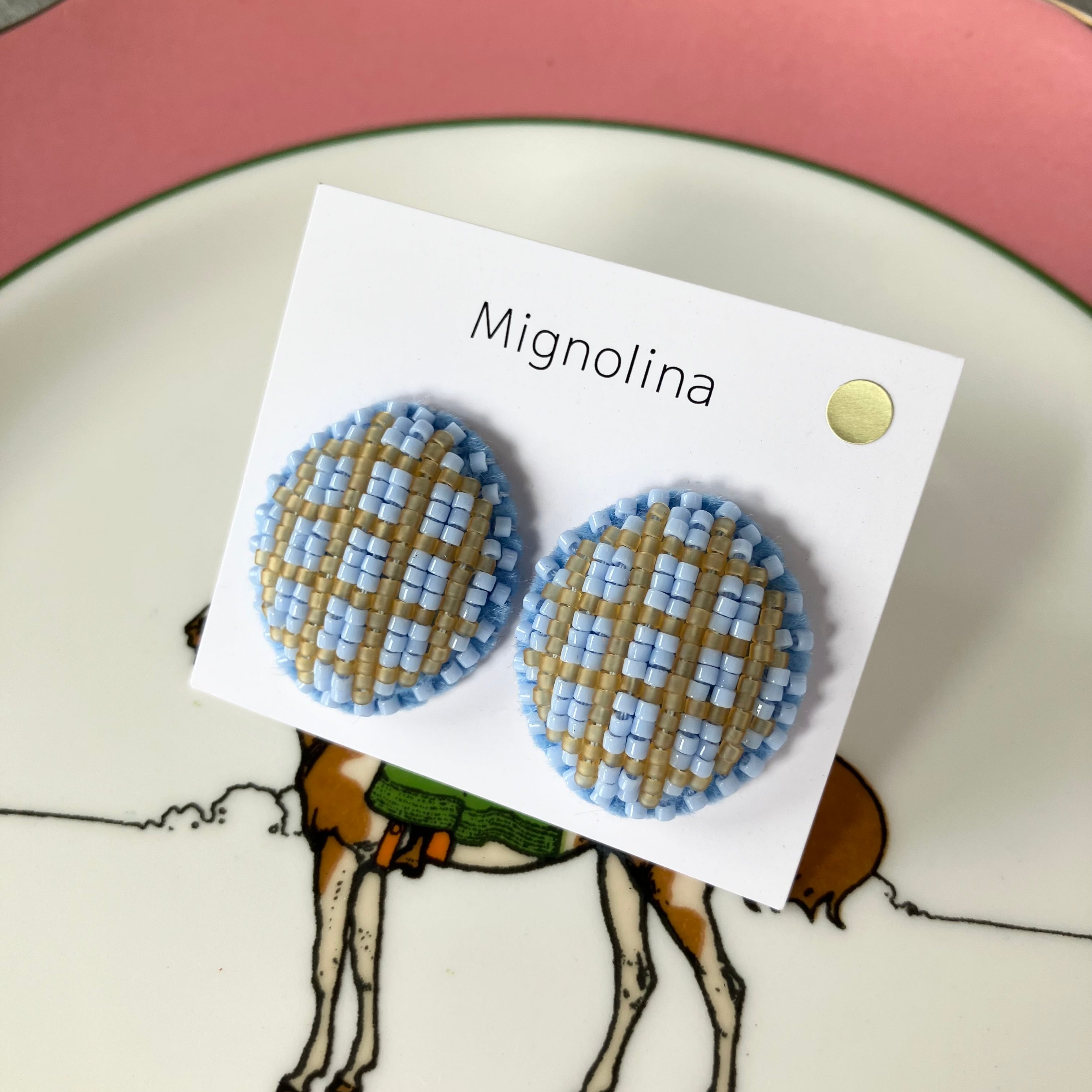 まるい耳飾り、真鍮メッキのネジばね式イヤリングです。