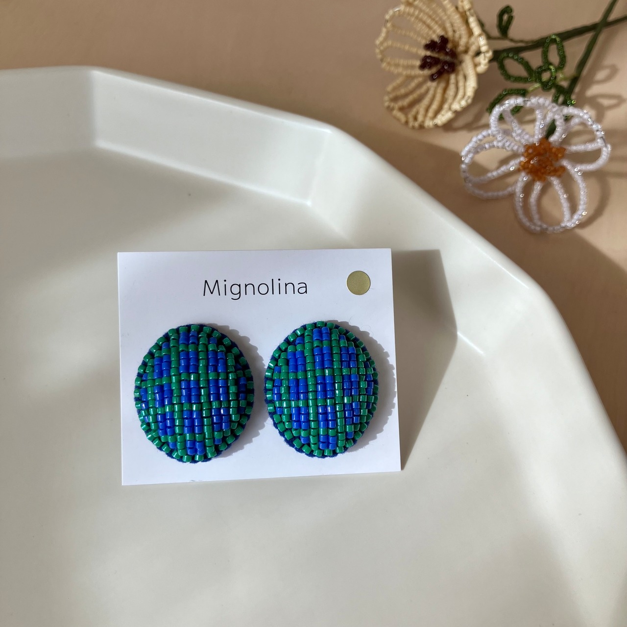 土台のフェルトにはわたを入れて、ぷっくりと立体的にビーズを刺繍しています。