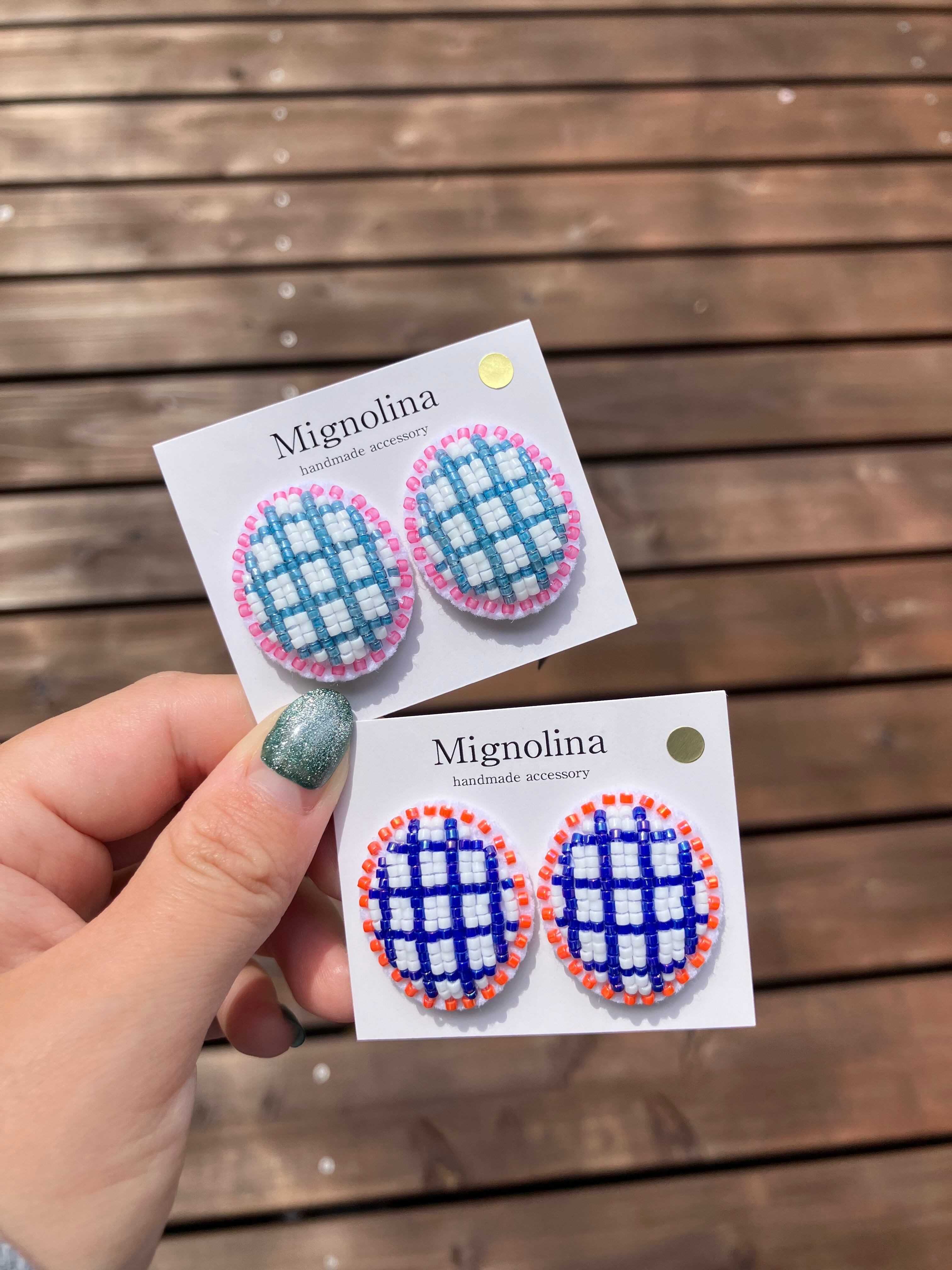 ホワイトとキラキラしたネイビーのチェック柄。