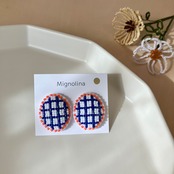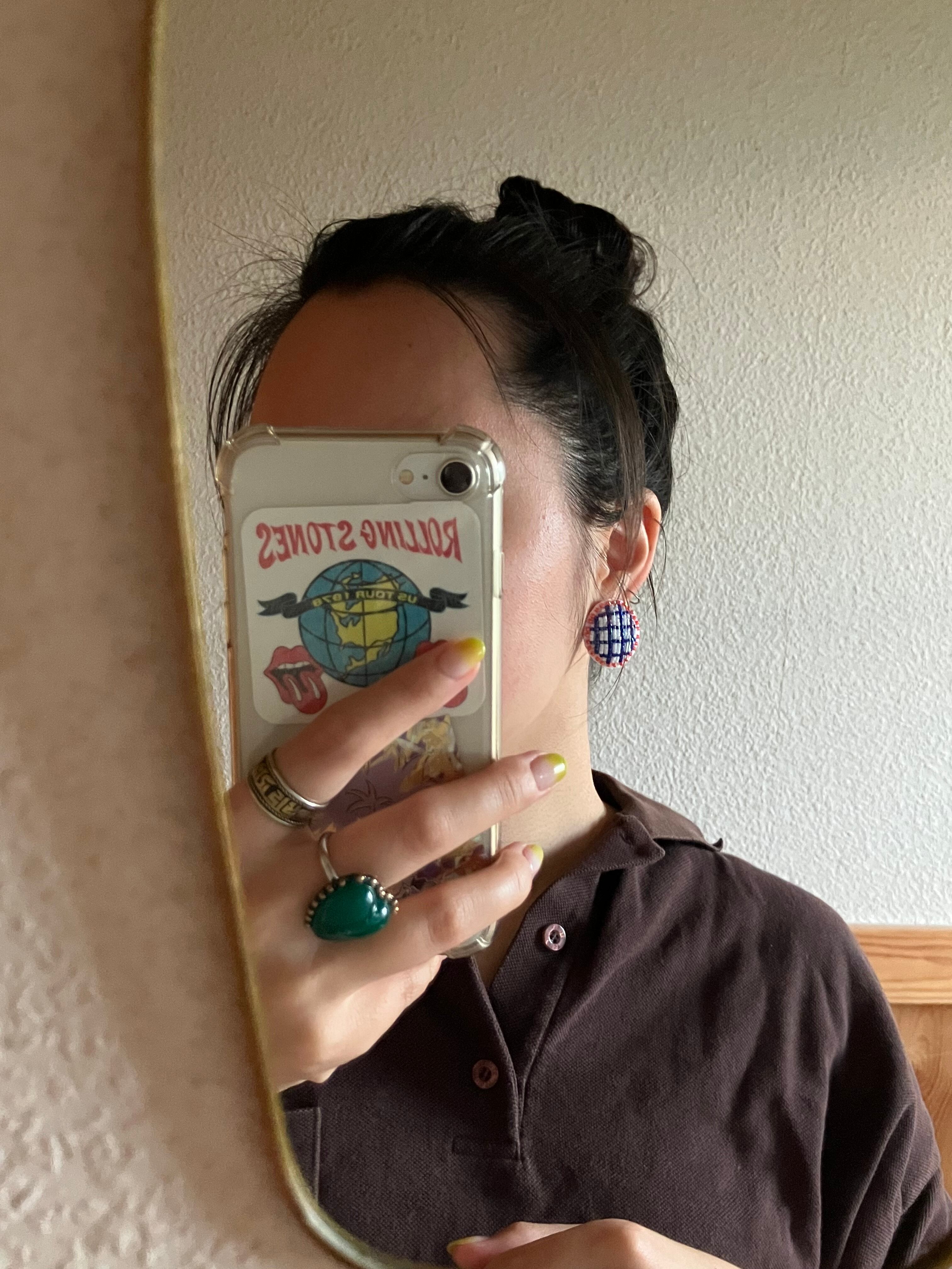 まるい耳飾り、真鍮メッキのネジばね式イヤリングです。
