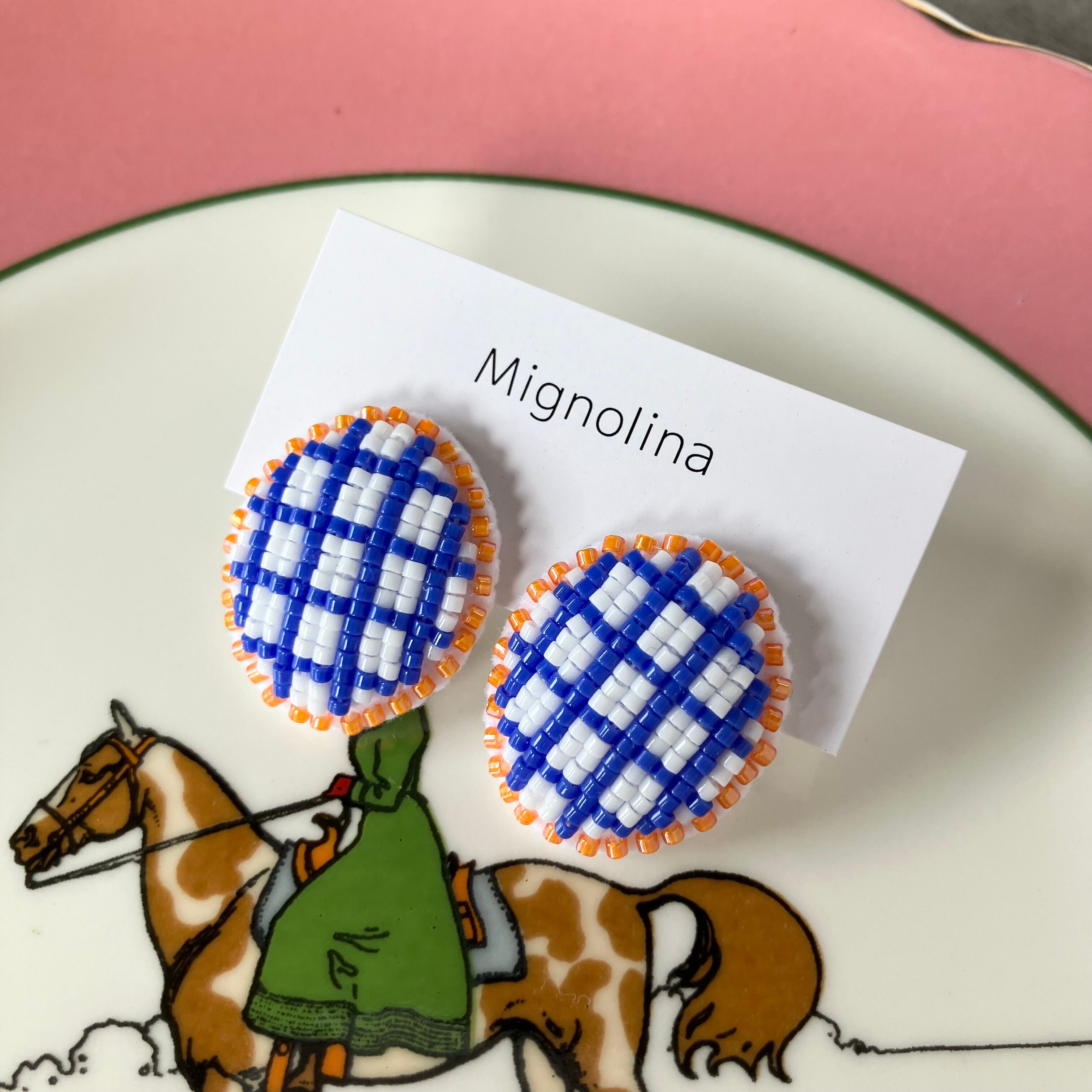 土台のフェルトにはわたを入れて、ぷっくりと立体的にビーズを刺繍しています。