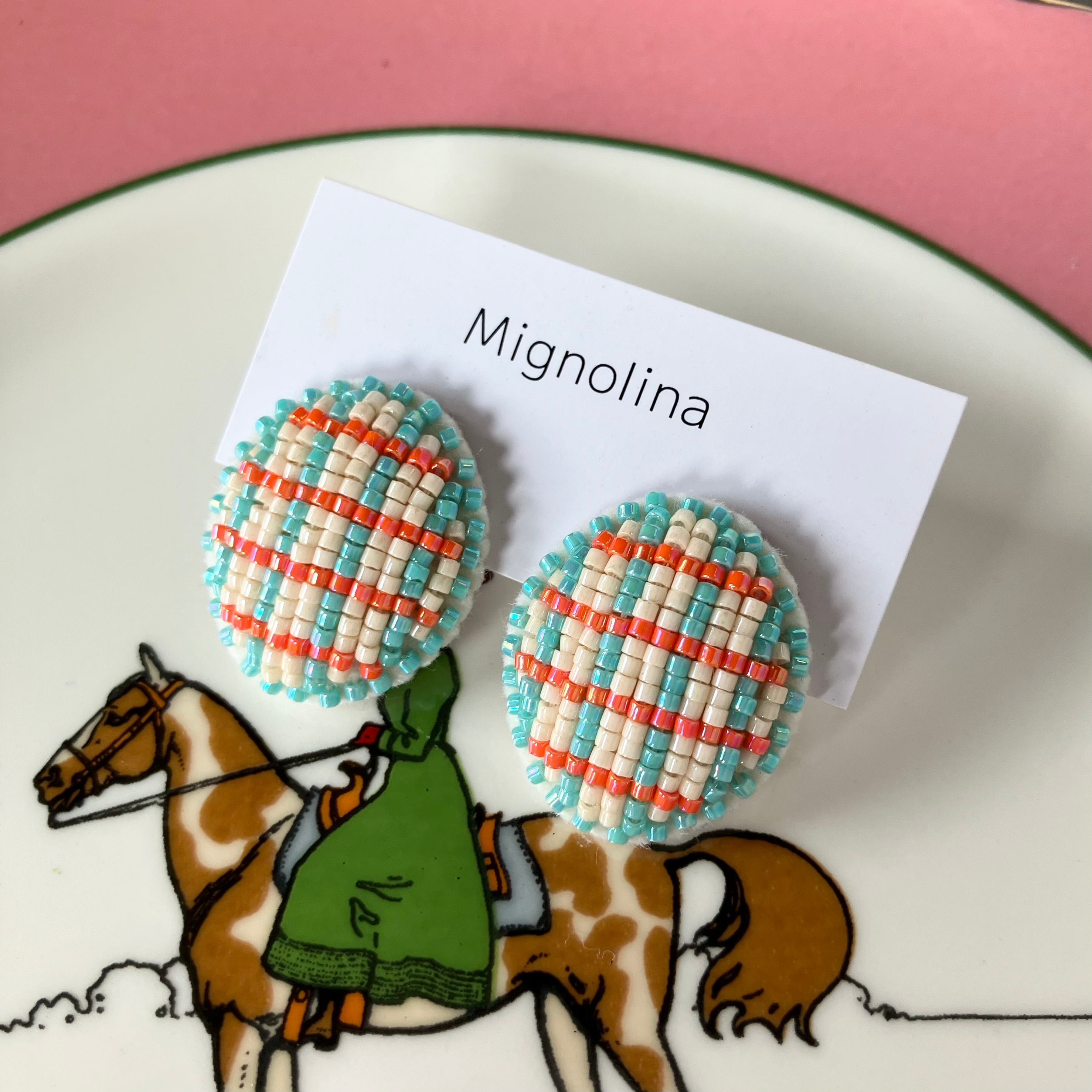 肌色×キラキラ水色×キラキラオレンジのチェック柄。