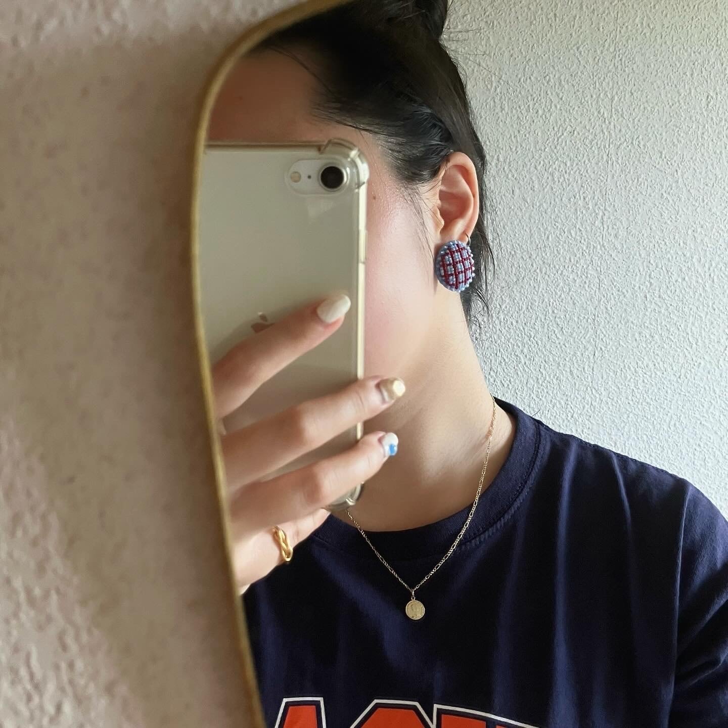 イヤリングはねじバネ式で、真鍮メッキ製です。