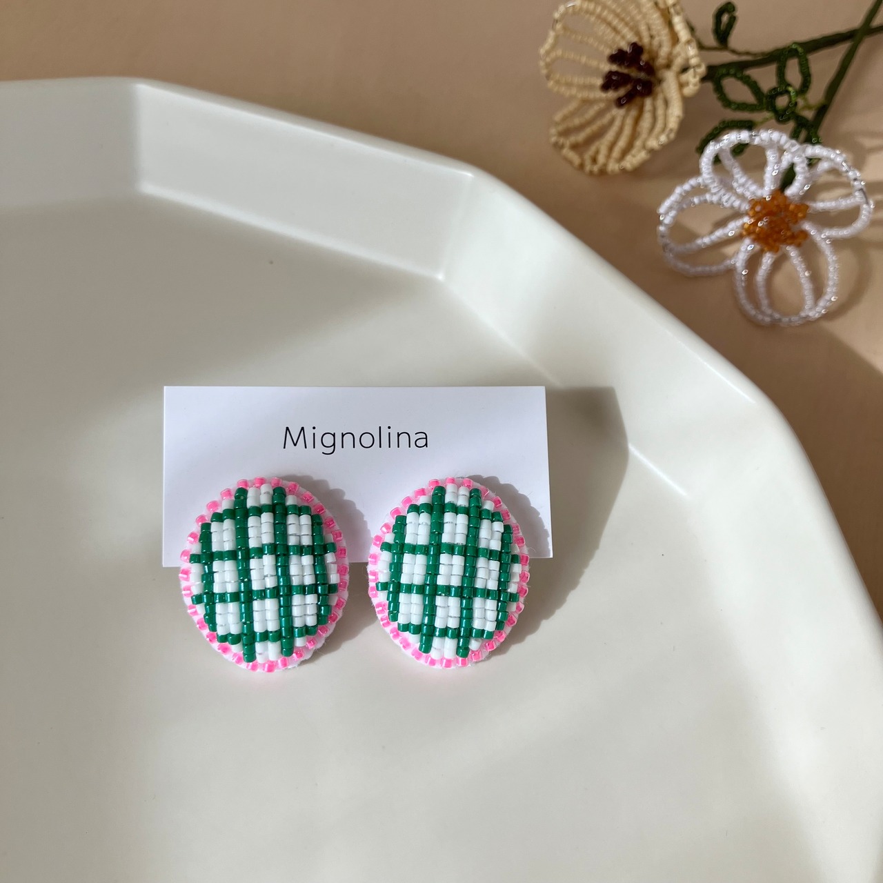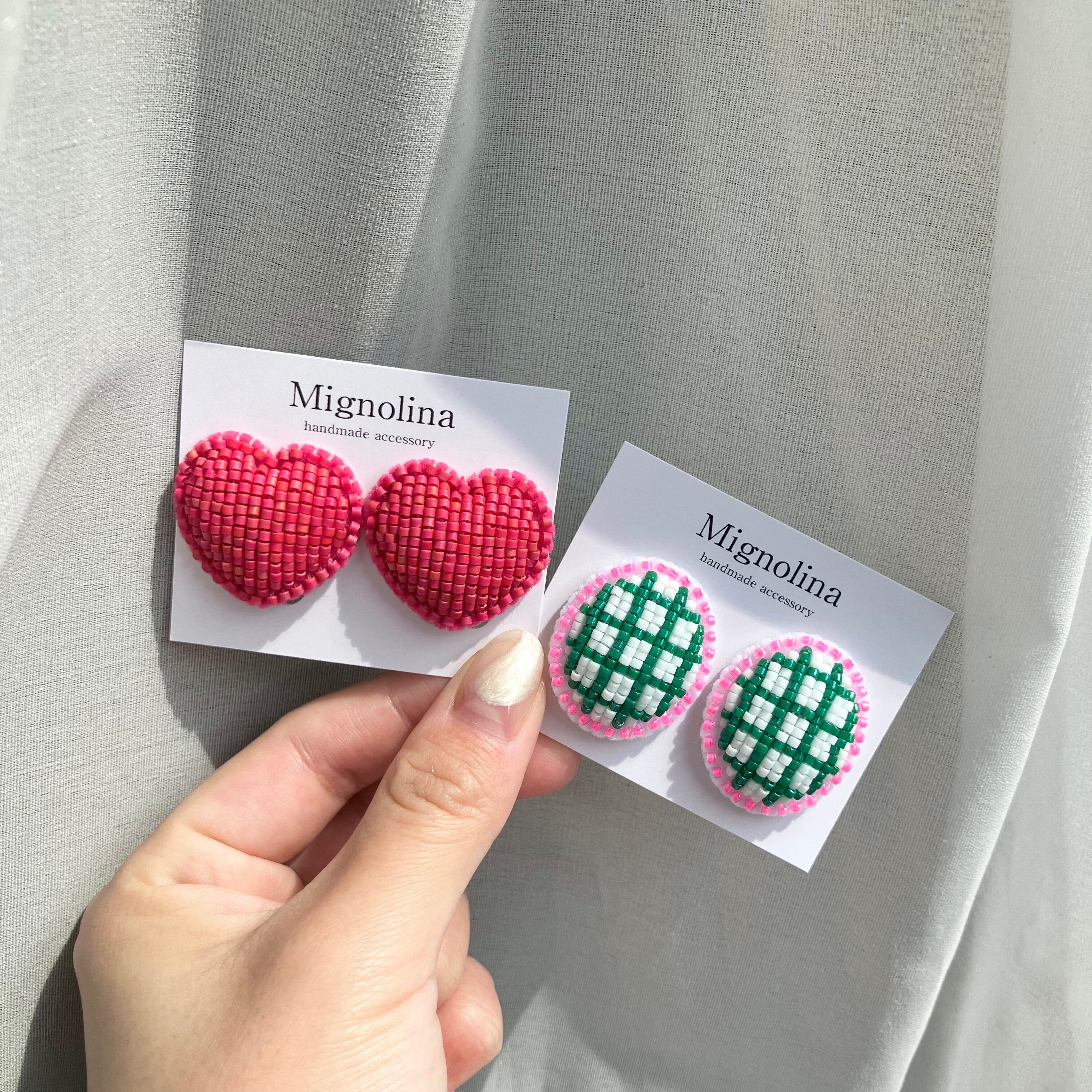 土台のフェルトにはわたを入れて、ぷっくりと立体的にビーズを刺繍しています。
