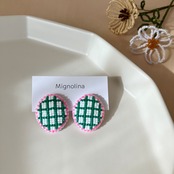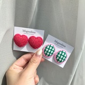 まるい耳飾り、ポスト及びキャッチ部分がステンレス製のピアスです。