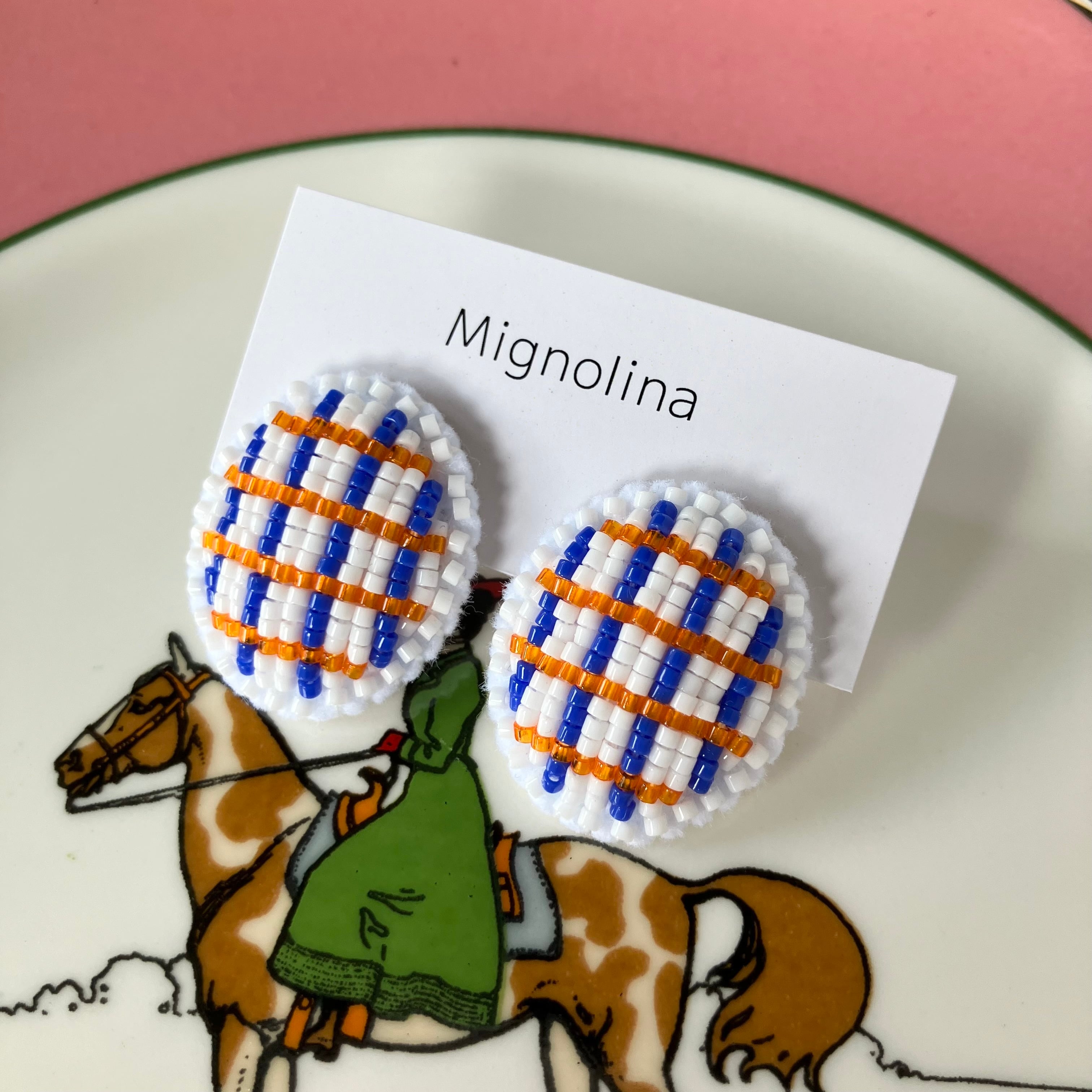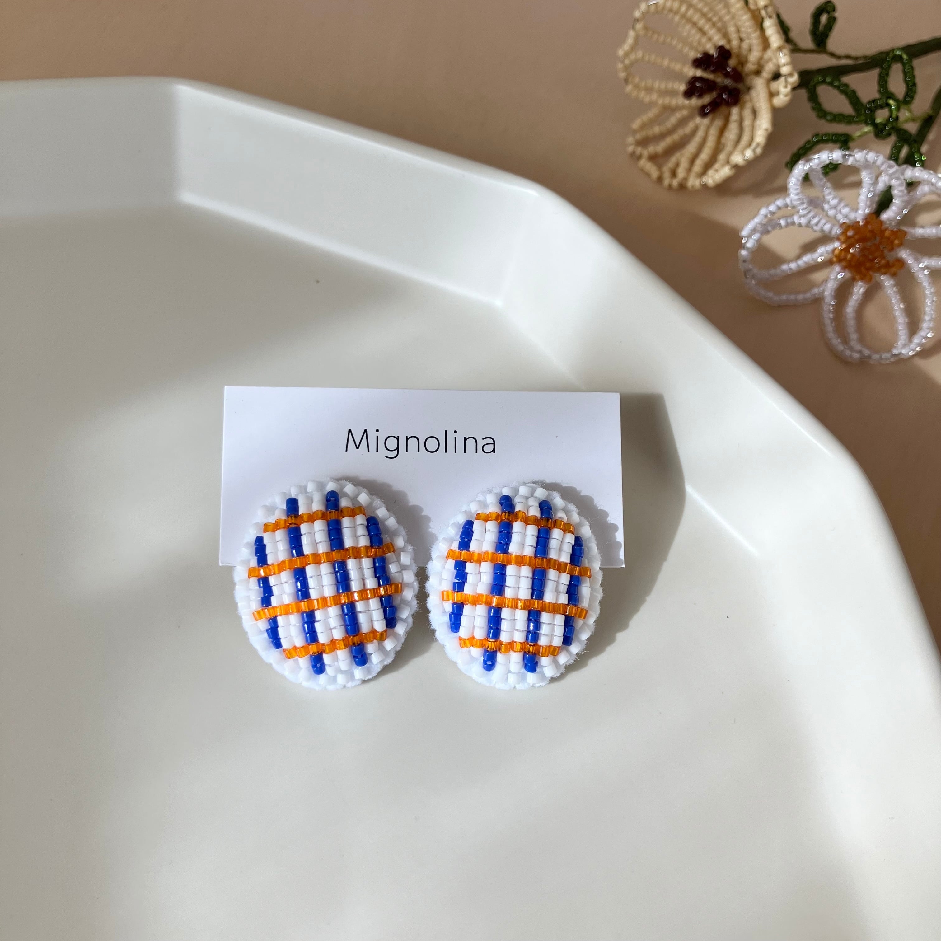 ホワイト×ブルー×クリアオレンジのチェック柄。