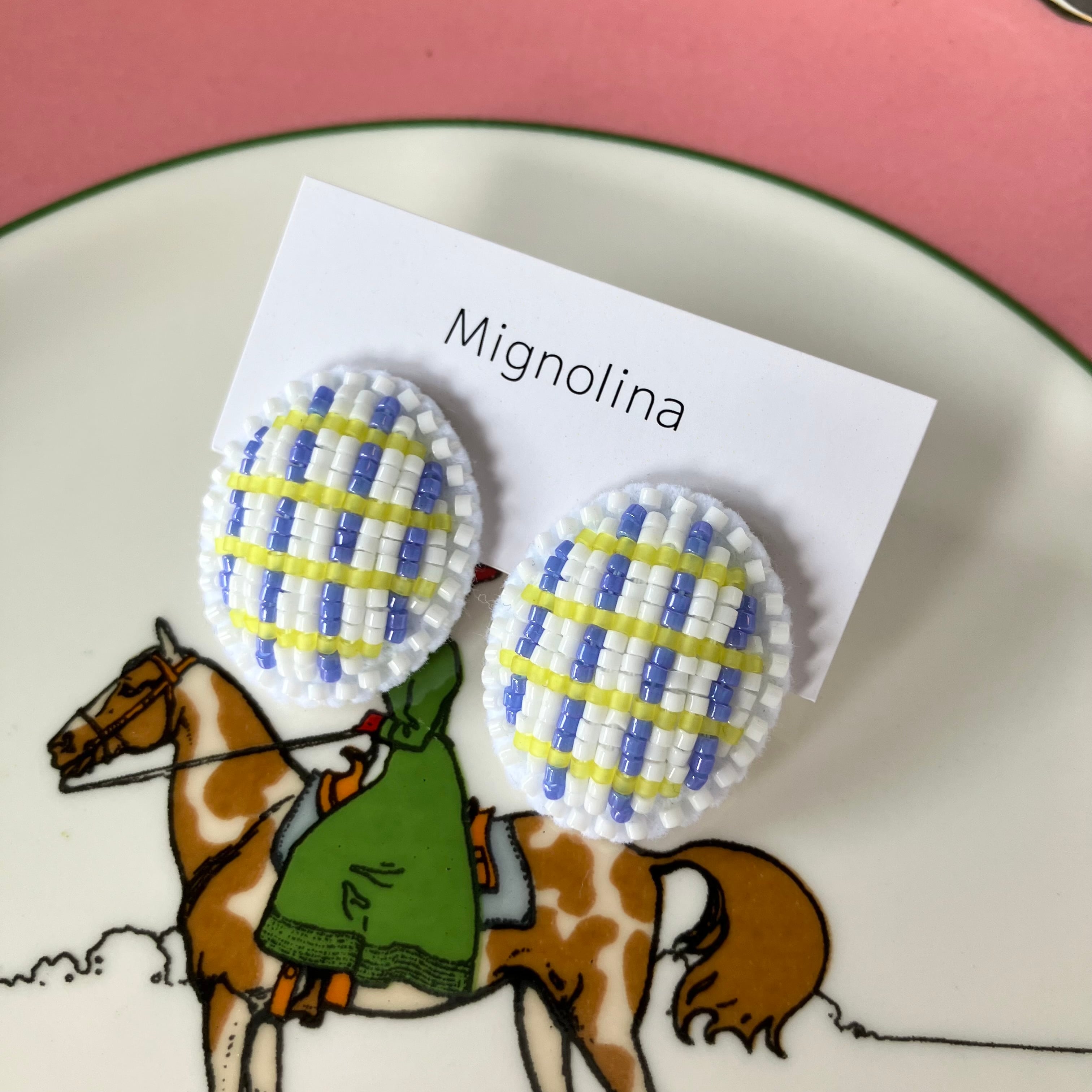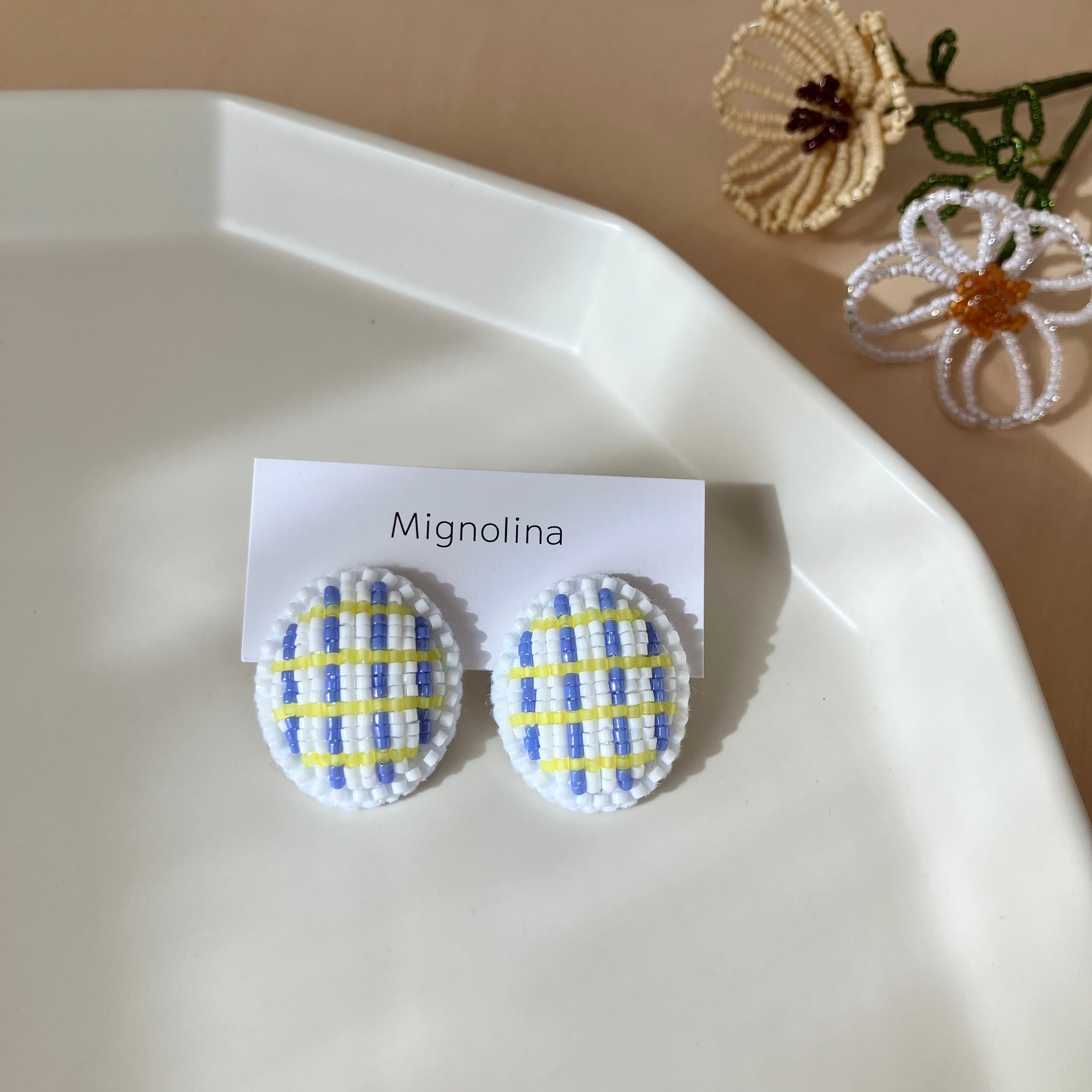ホワイト×ラベンダー×マットイエローのチェック柄。