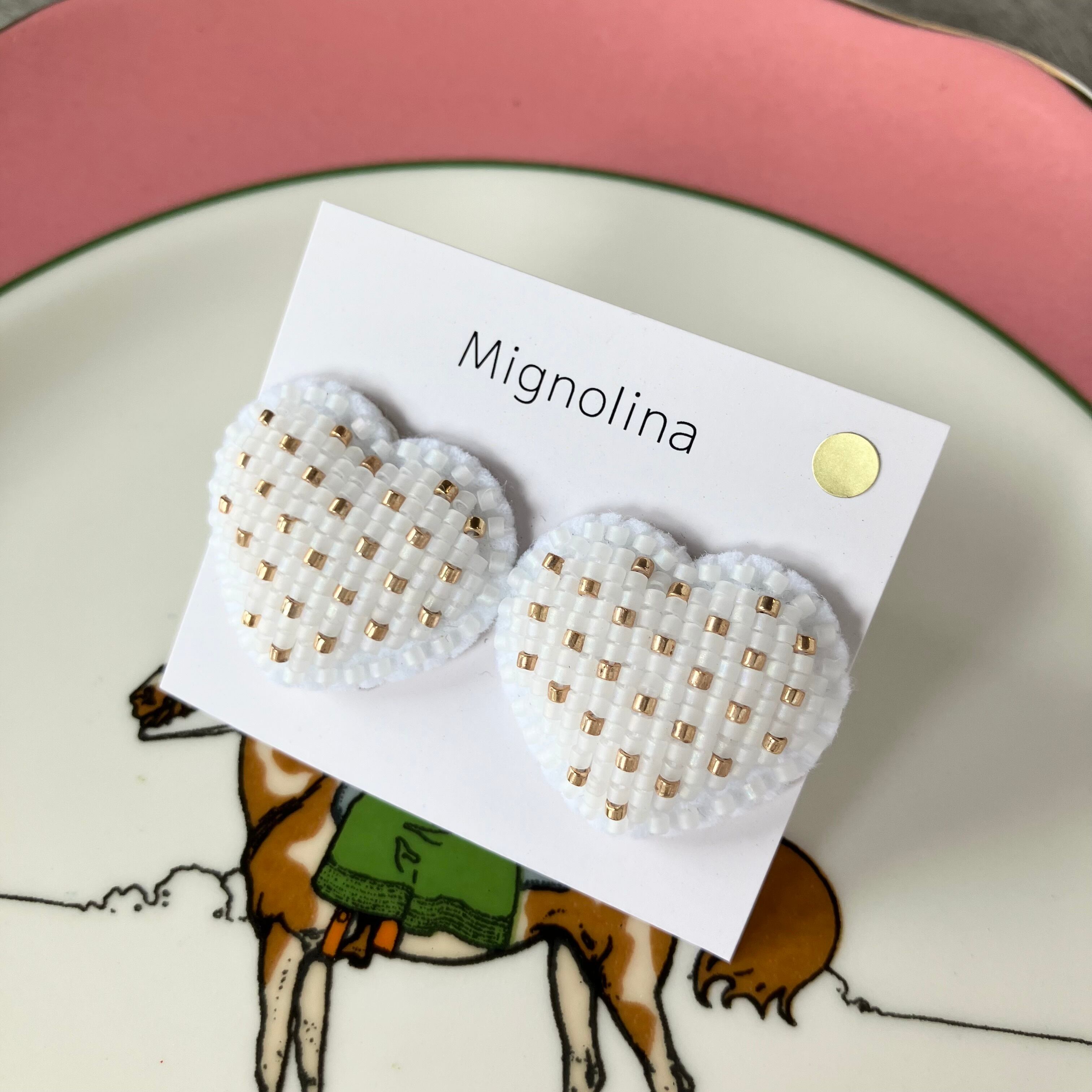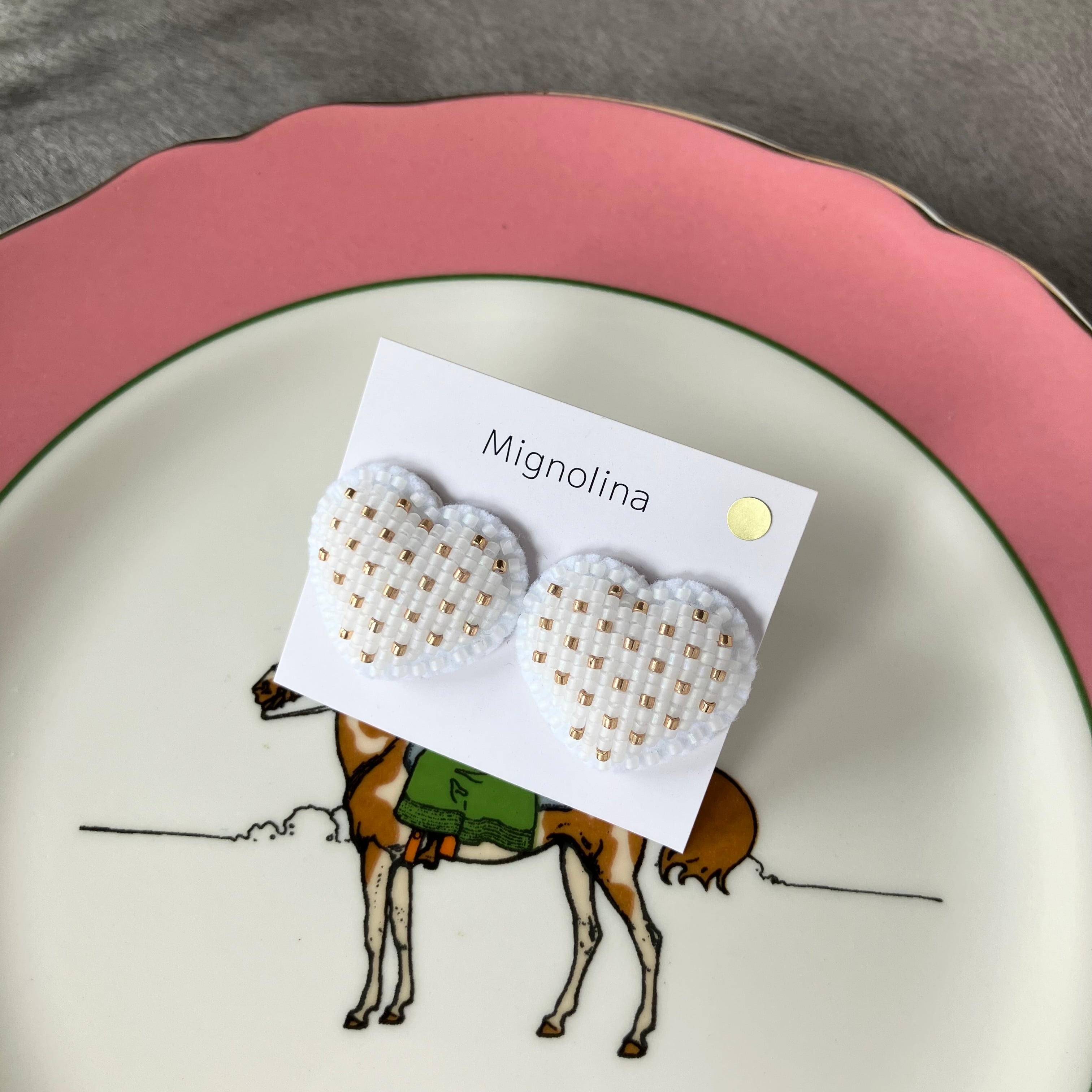 マットホワイトとゴールドのドット柄です。