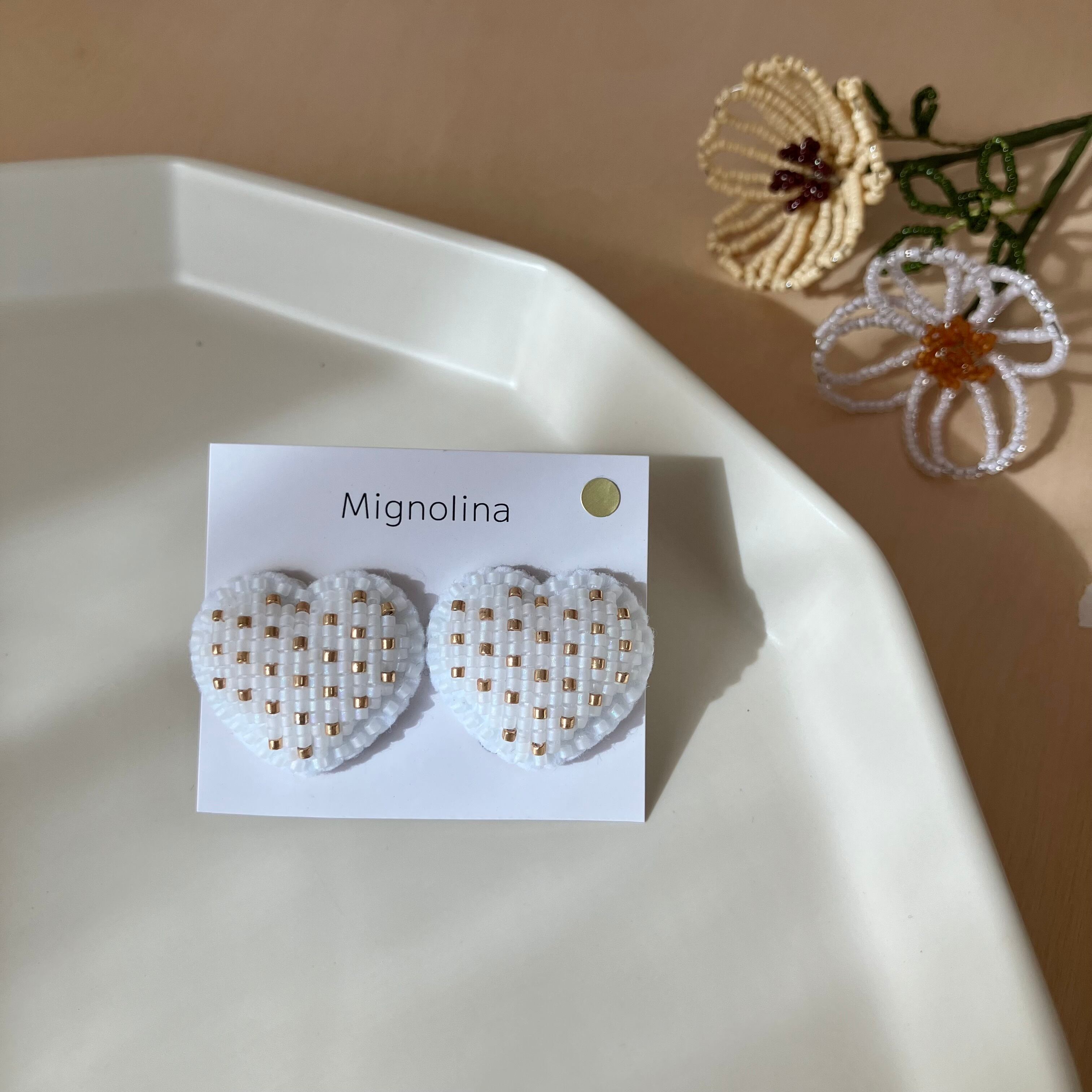 土台のフェルトにはわたを入れて、ぷっくりと立体的にビーズを刺繍しています。