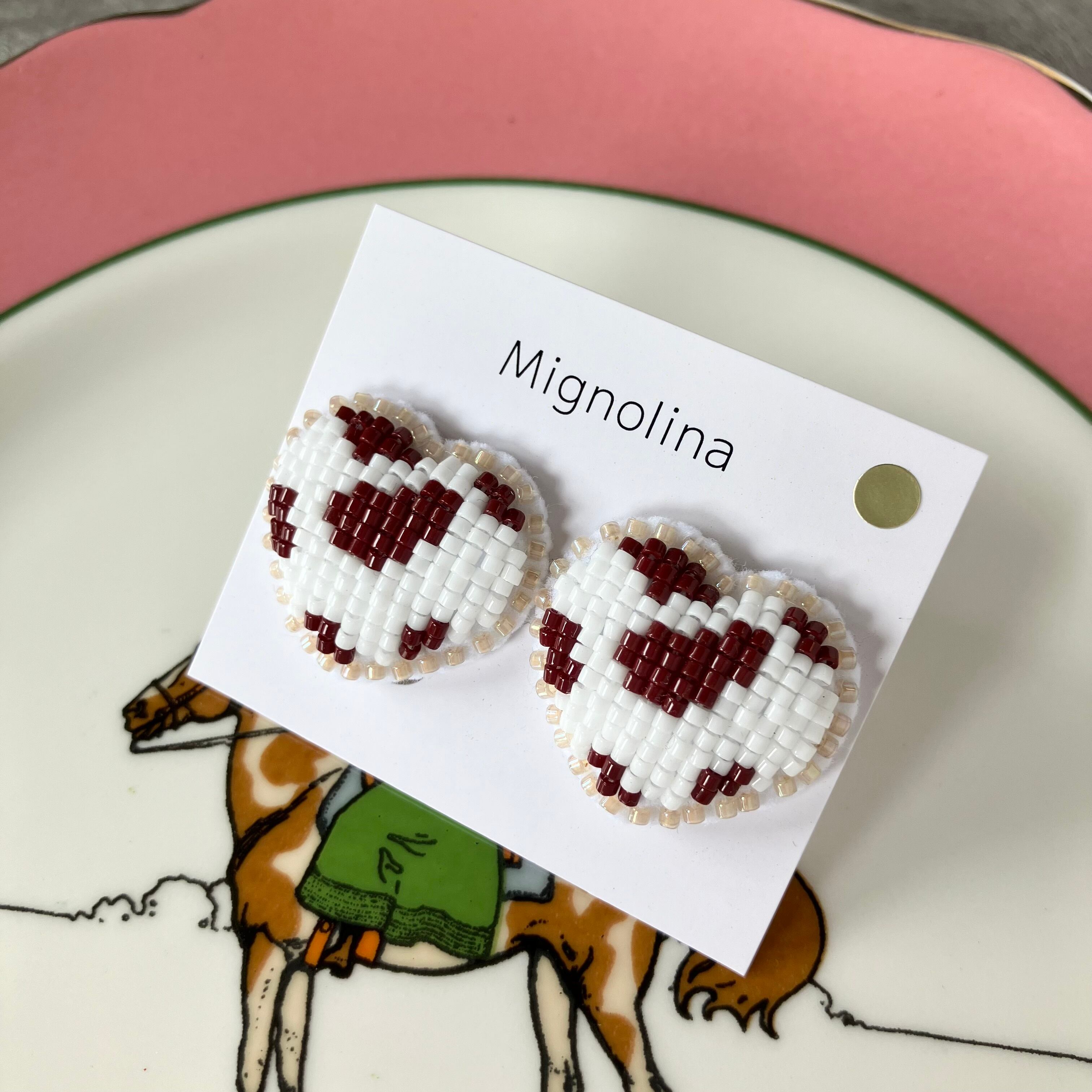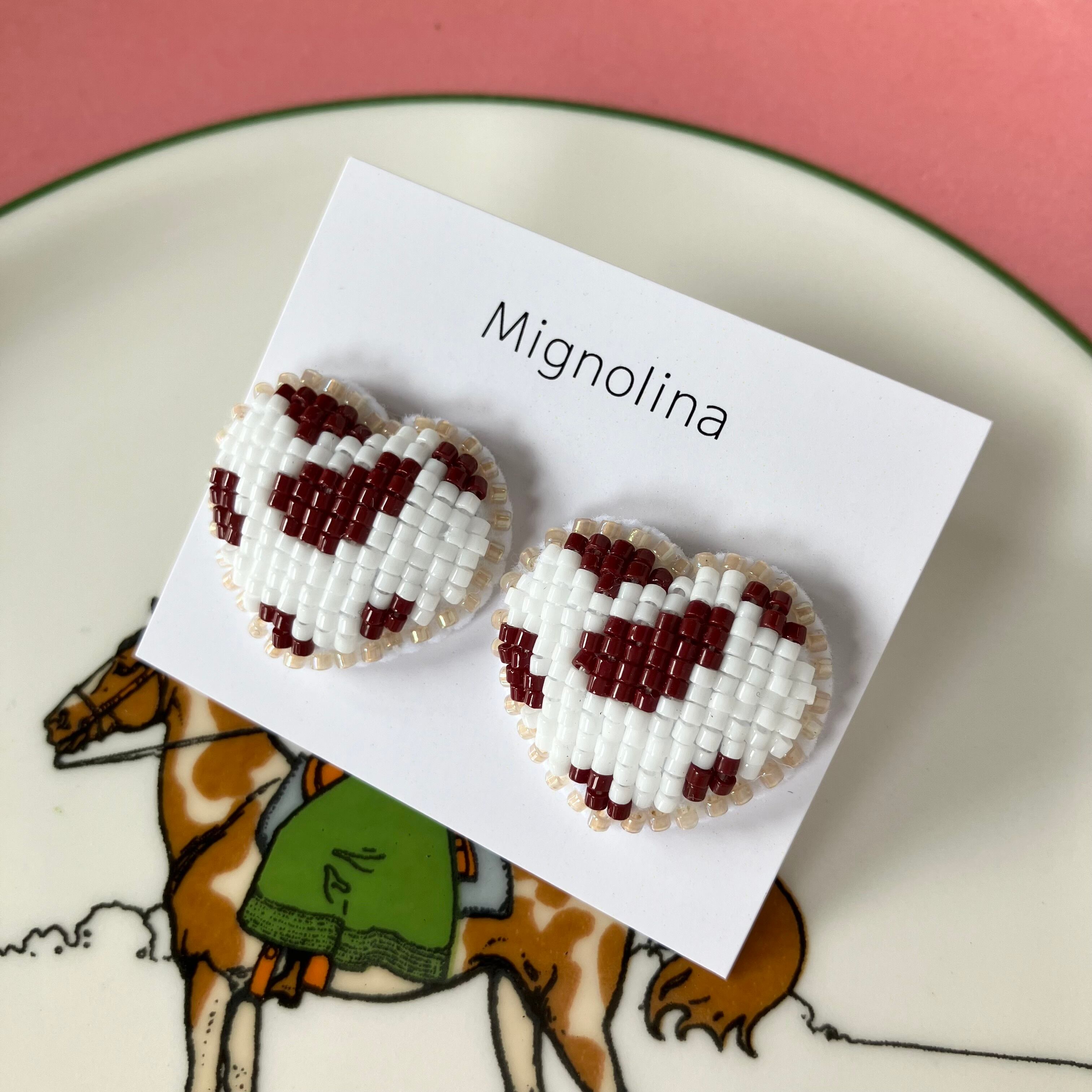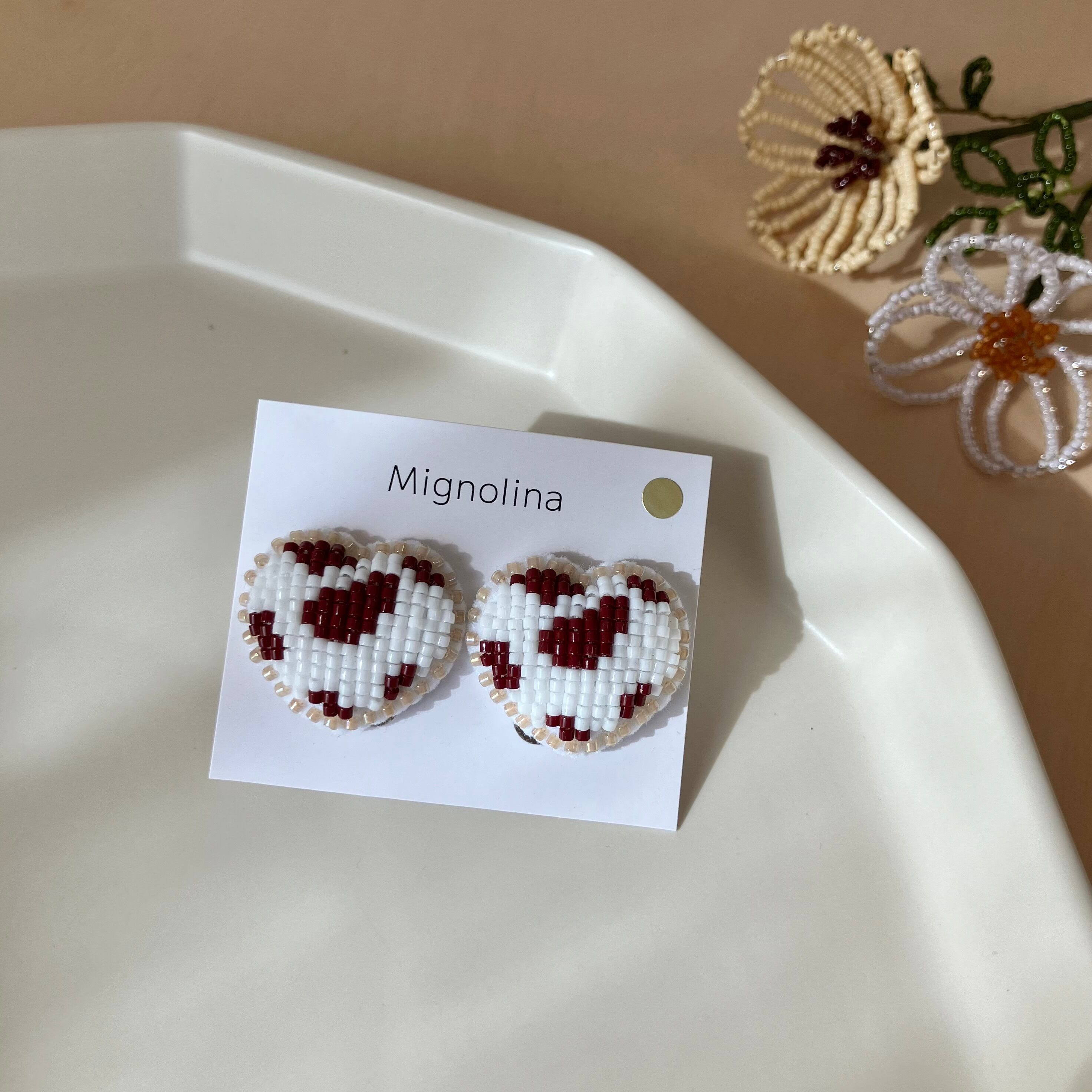 土台のフェルトにわたを入れて、ぷっくりと立体的にビーズを刺繍しています。