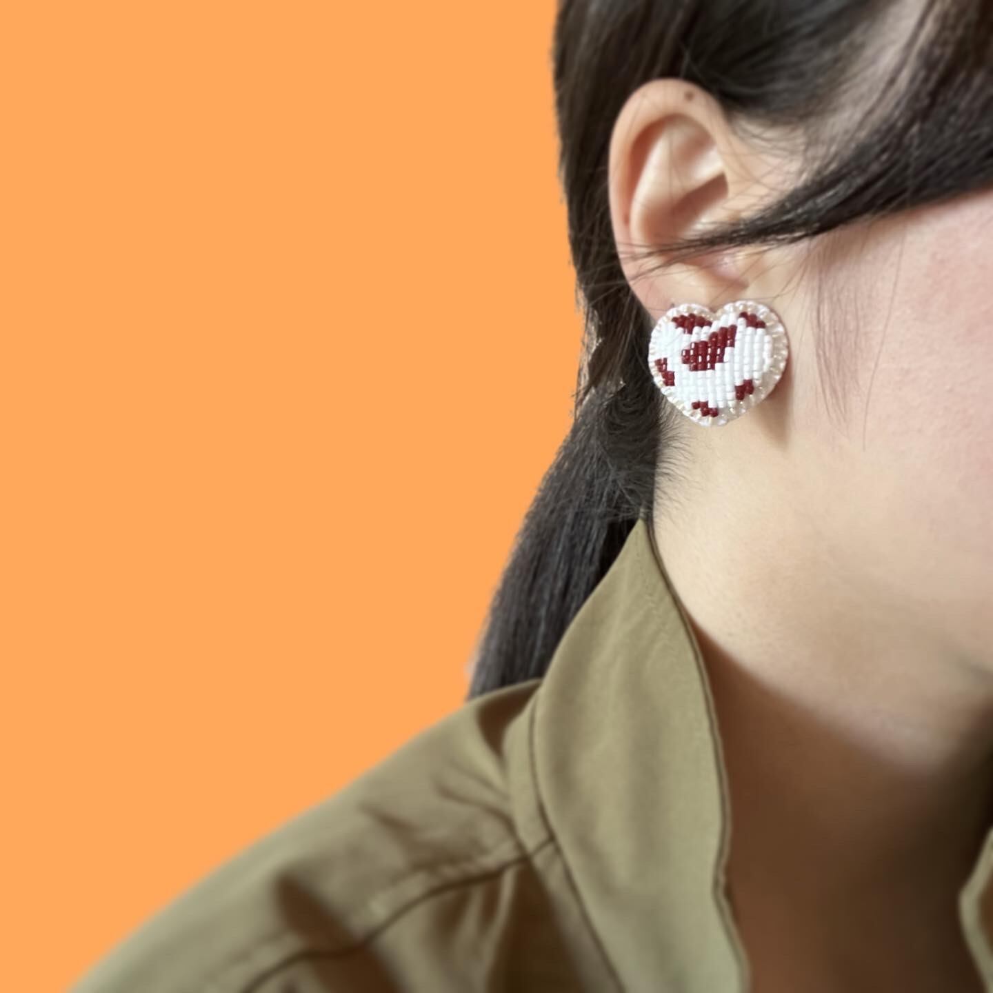 イヤリングはねじバネ式の真鍮メッキ製です。