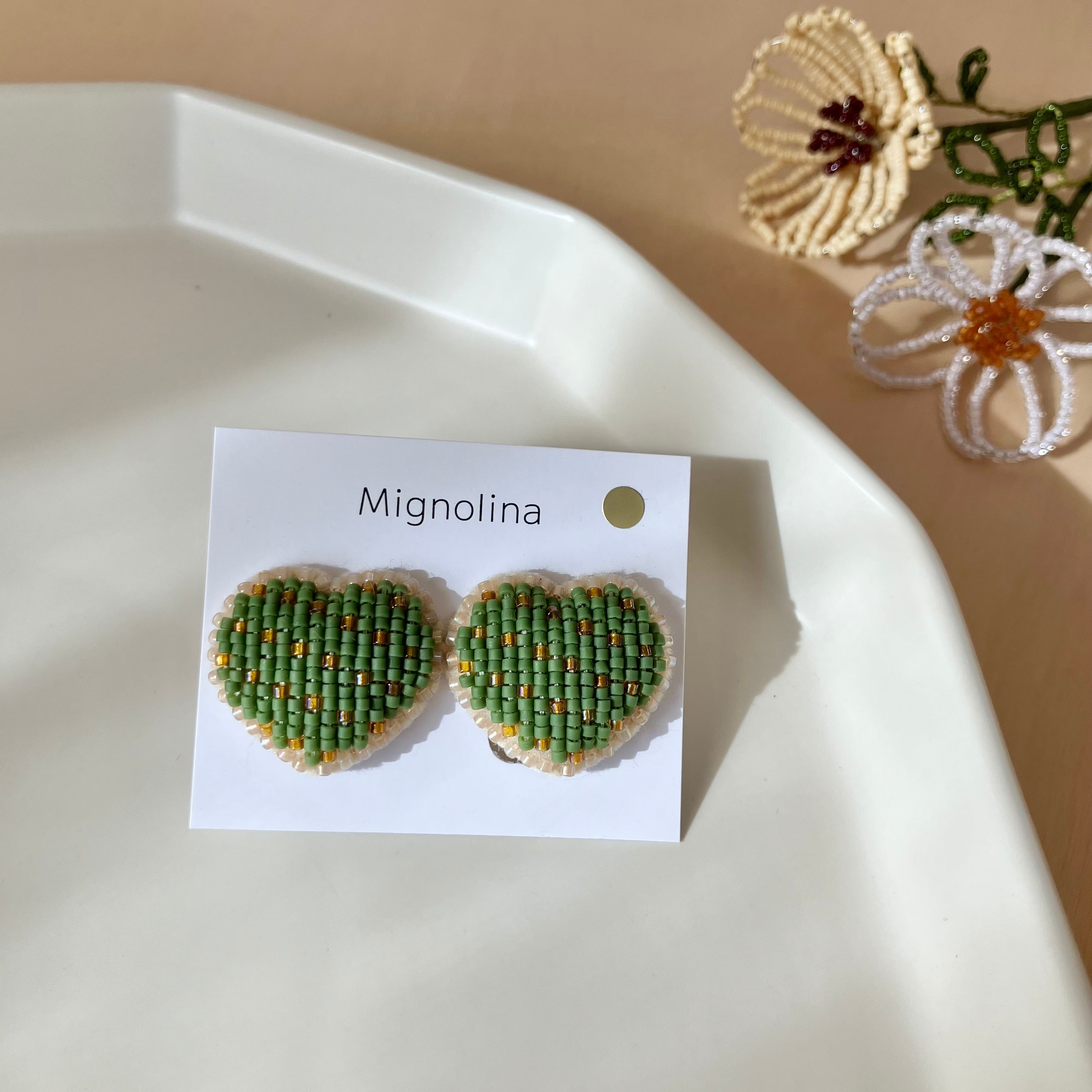 土台のフェルトにはわたを入れて、ぷっくりと立体的にビーズを刺繍しています。