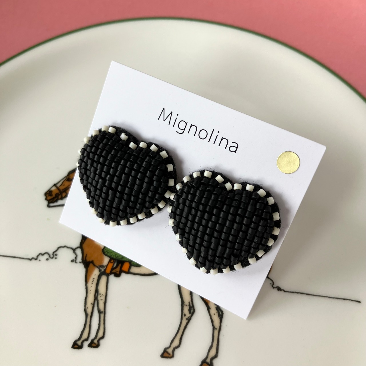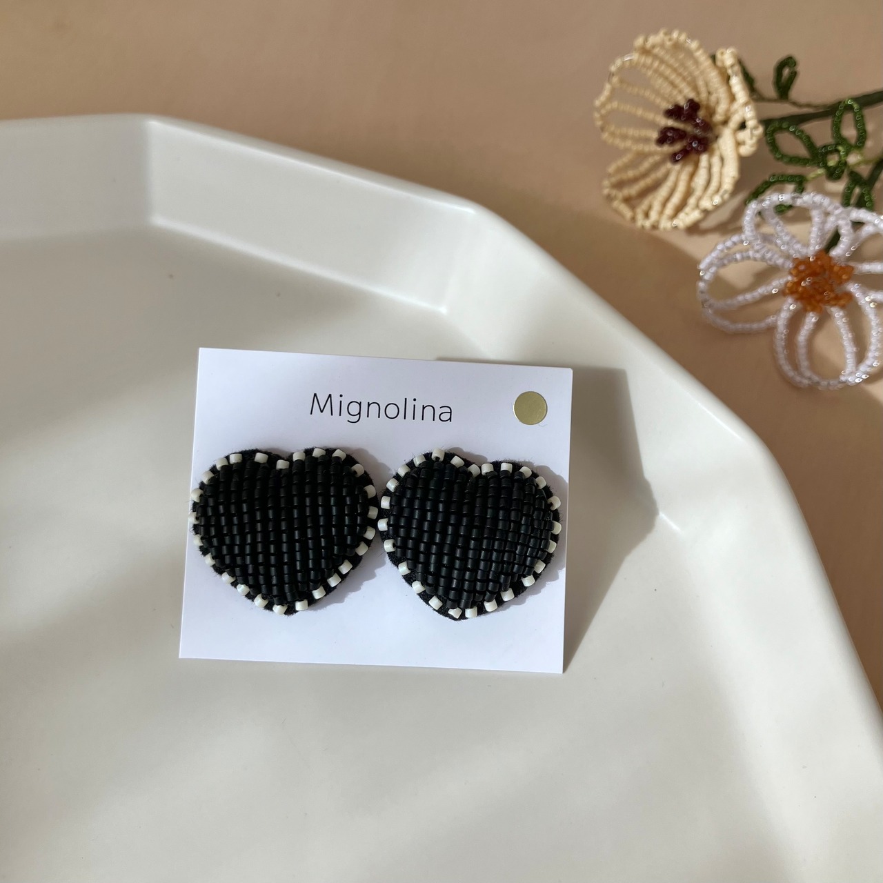 マットなブラックカラー。ふちはマットクリームで囲んでいます。