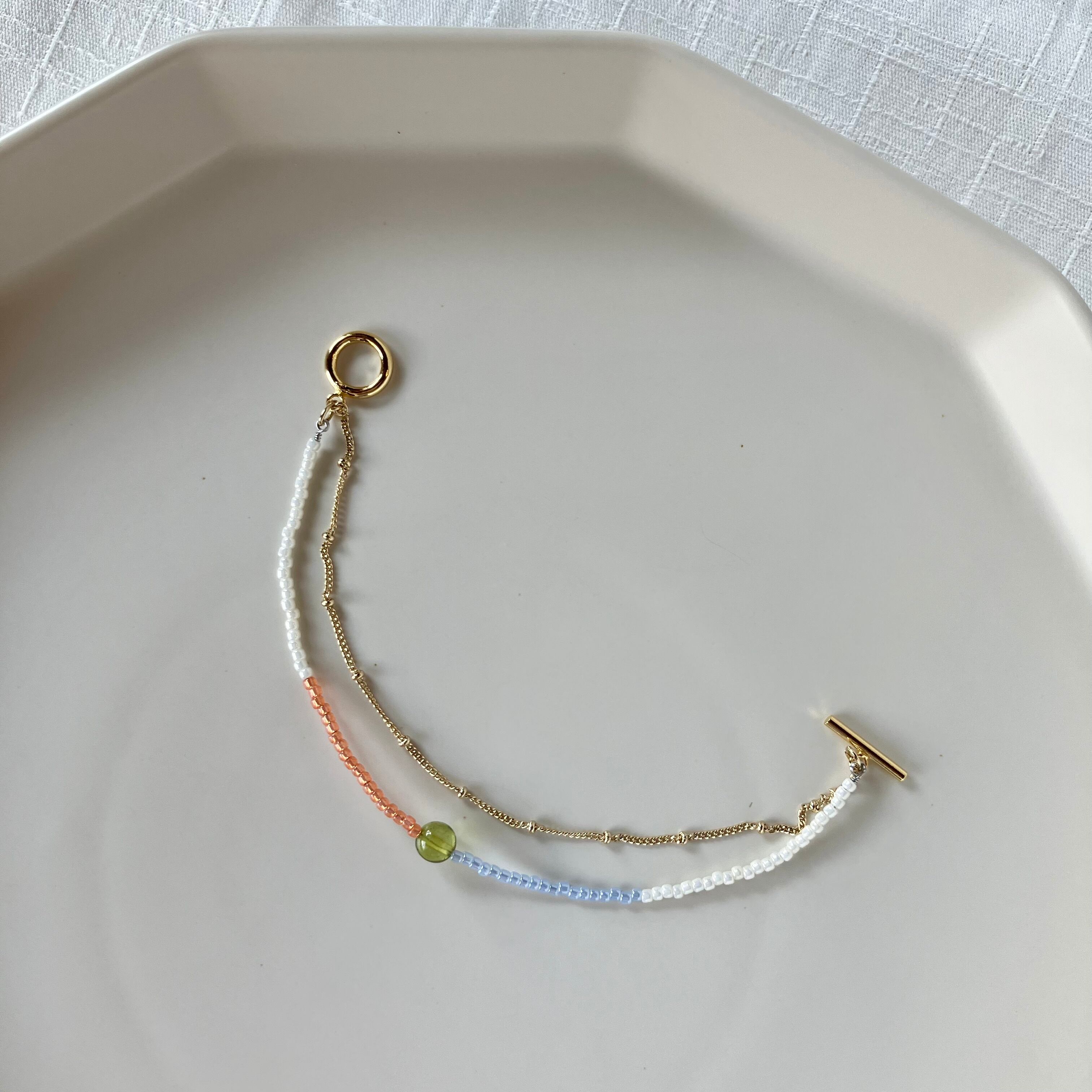 ビーズとつぶつぶチェーンの2連ブレスレットです。
