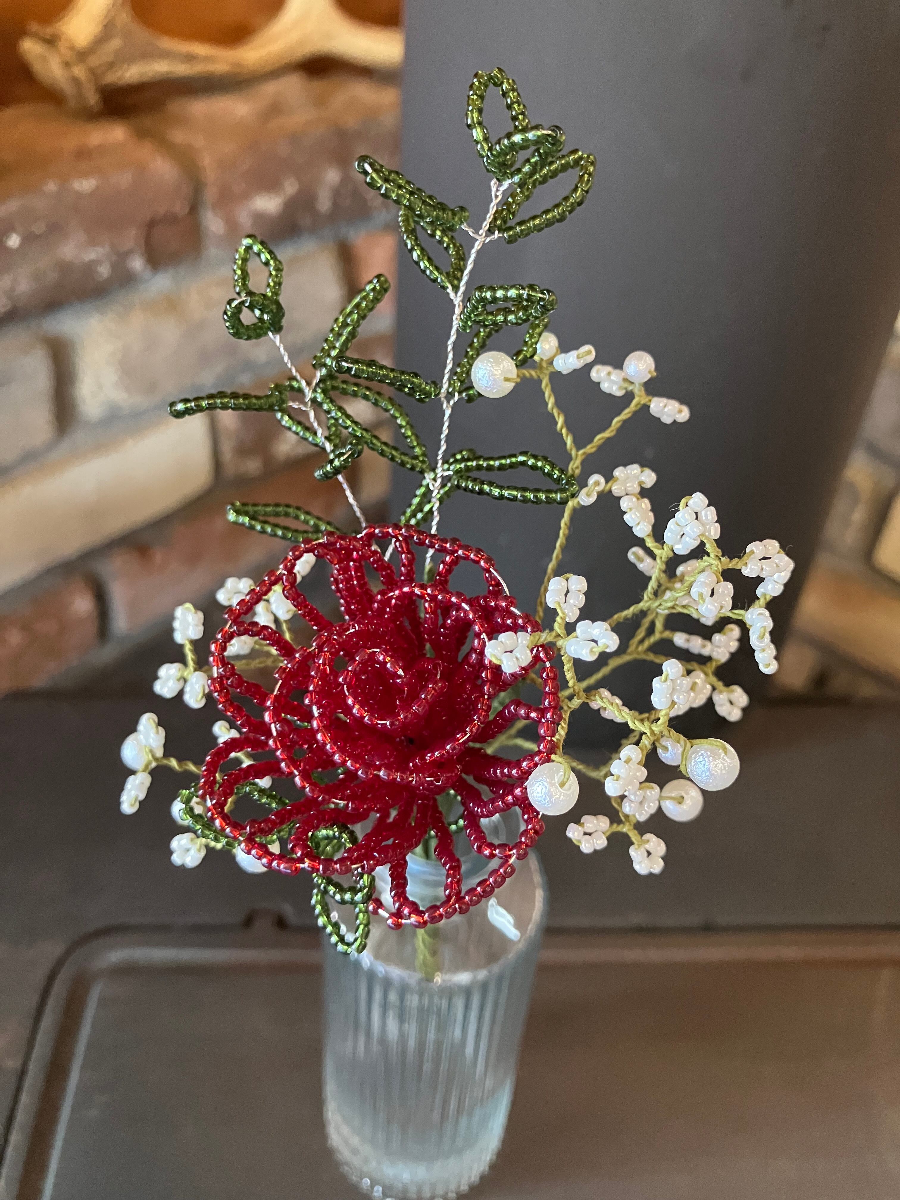 ガラス製ビーズ、ステンレス製または鉄製ワイヤー