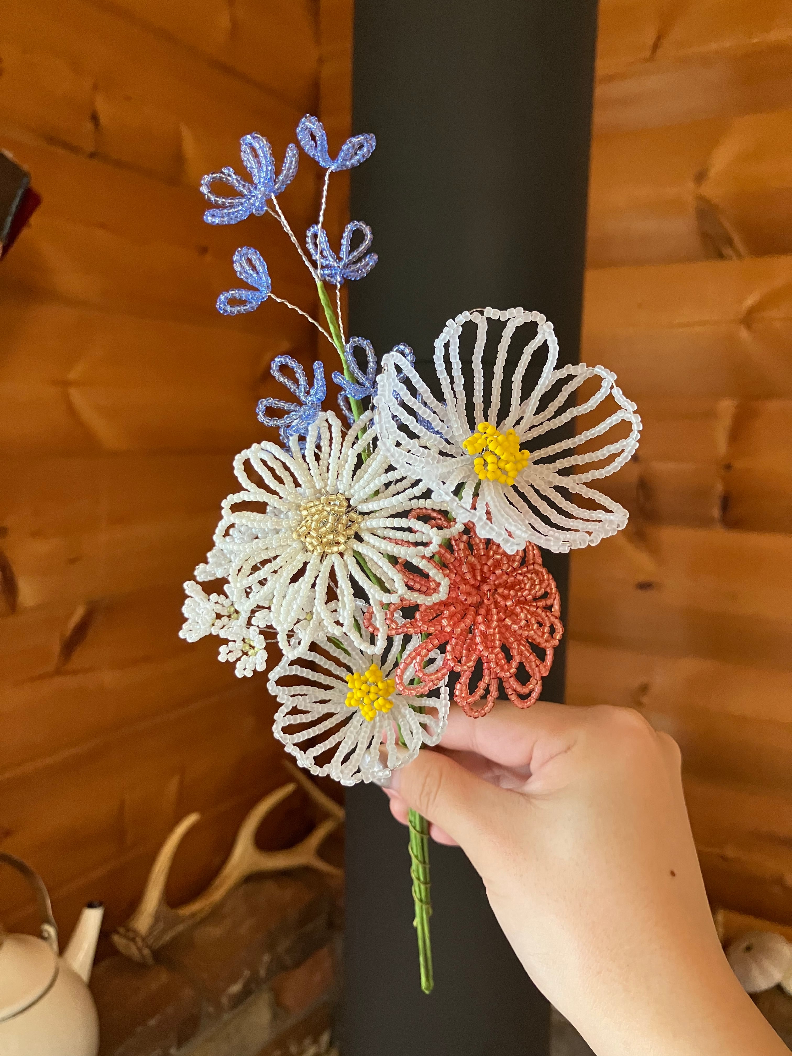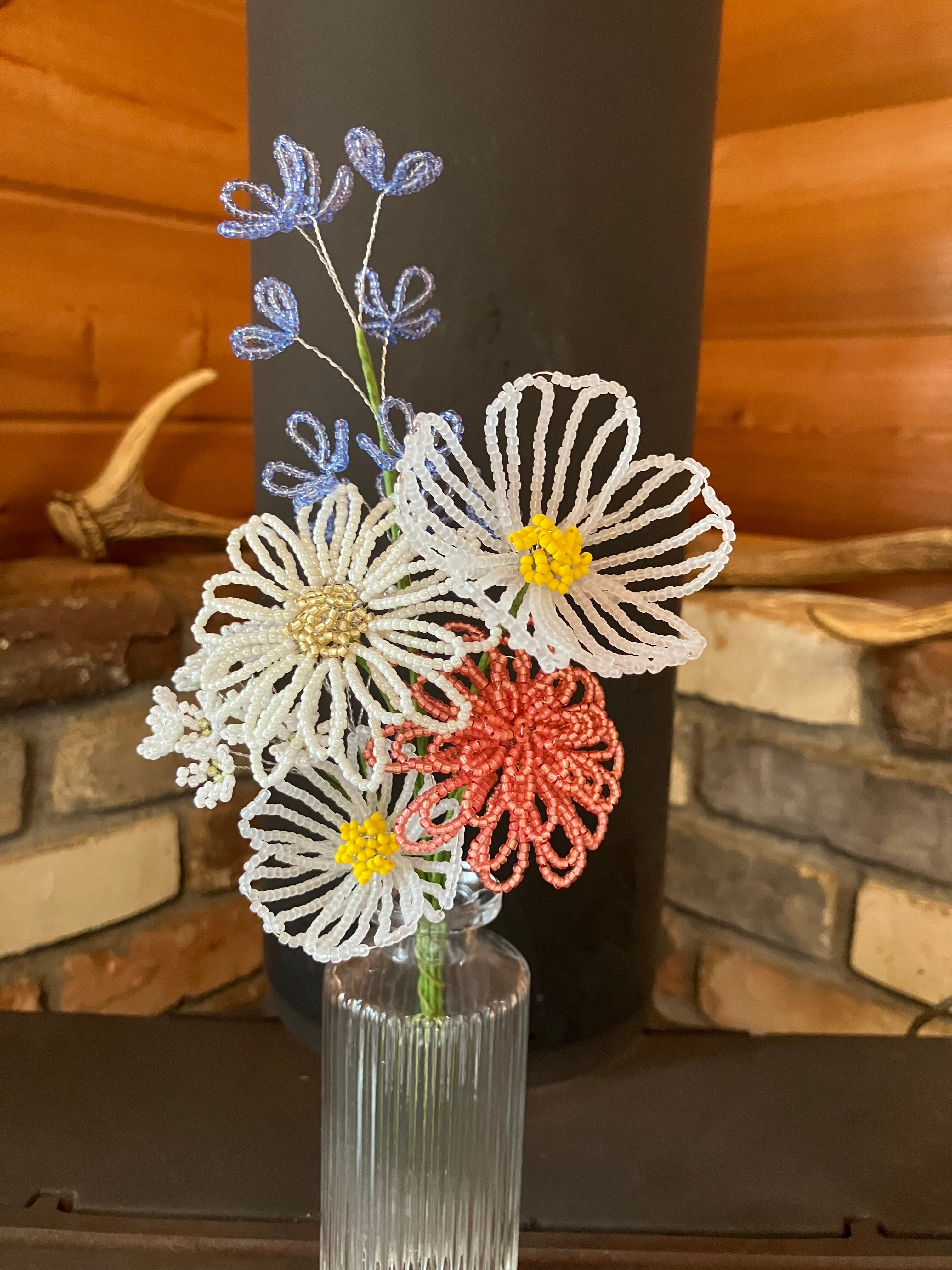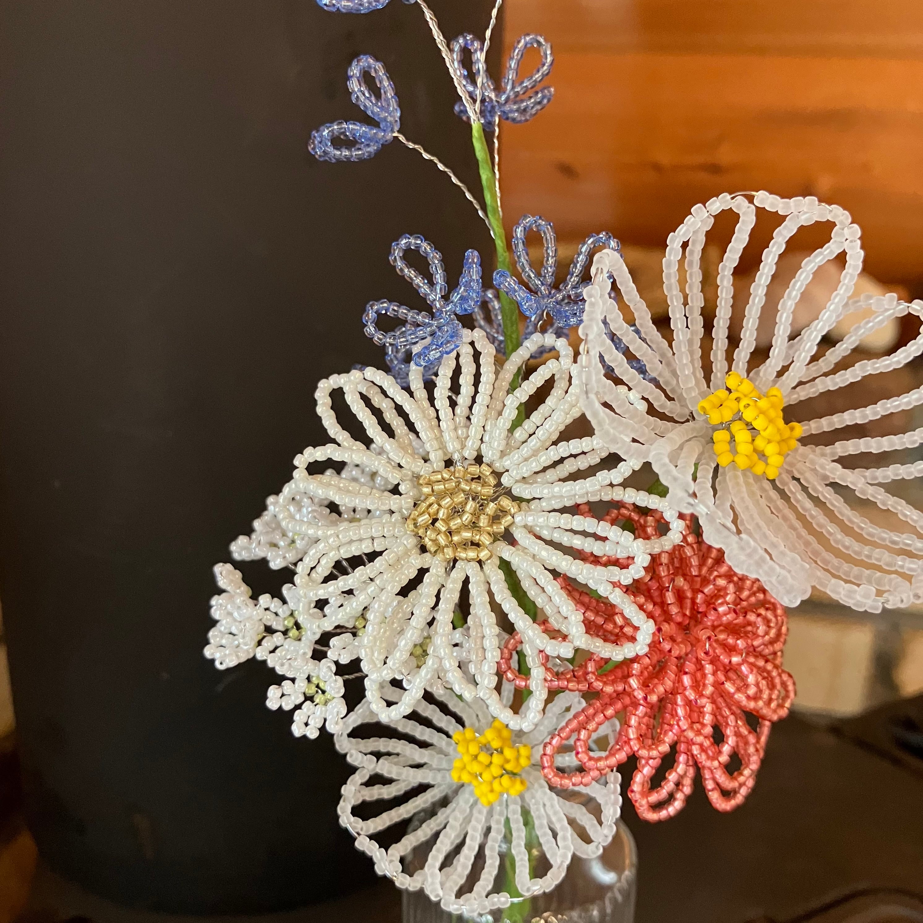 ガラス製ビーズ、ステンレス製または鉄製ワイヤー
