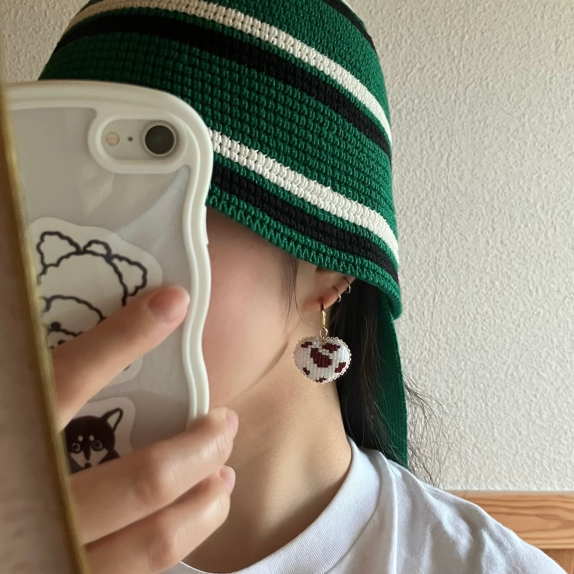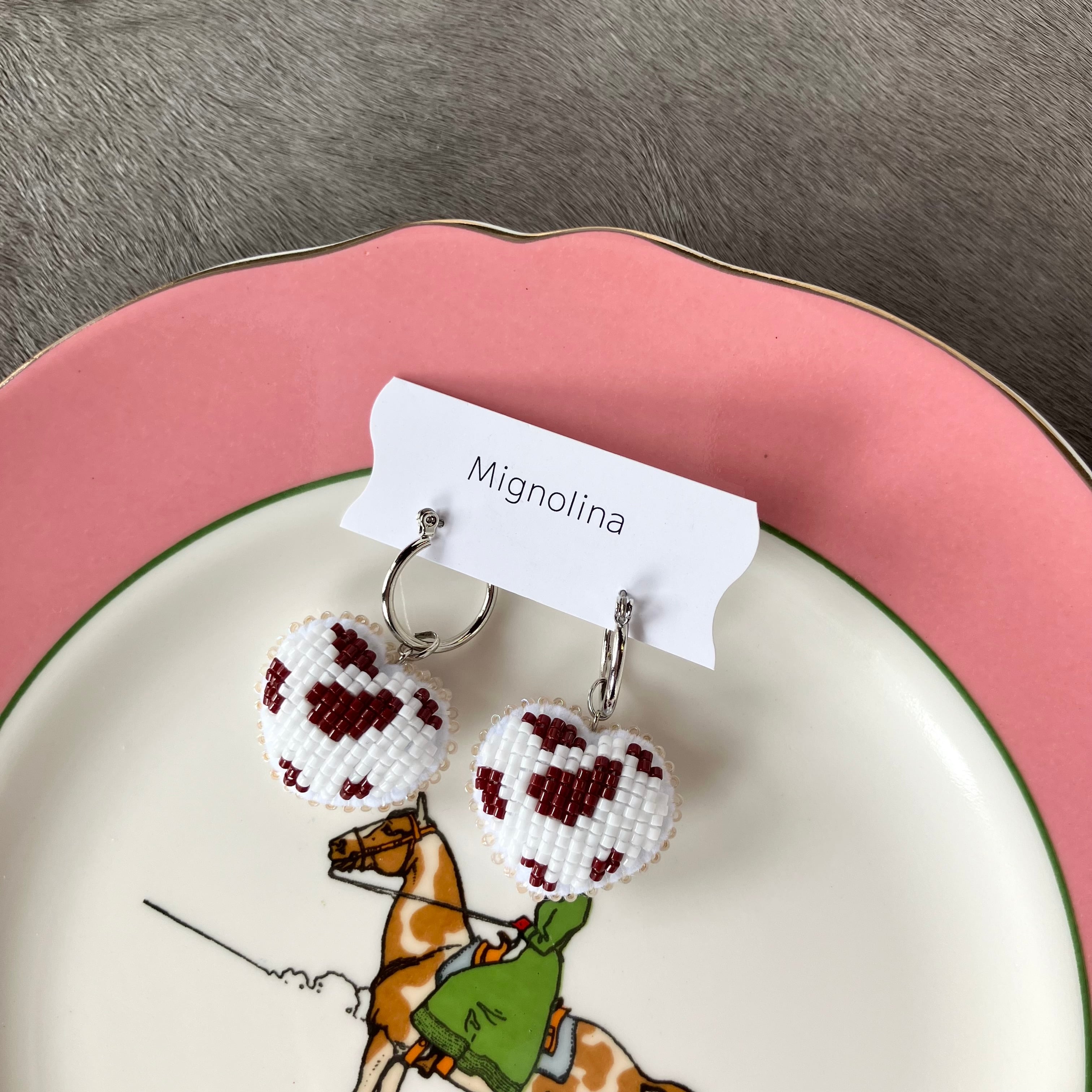 牛さん模様のハートの耳飾り