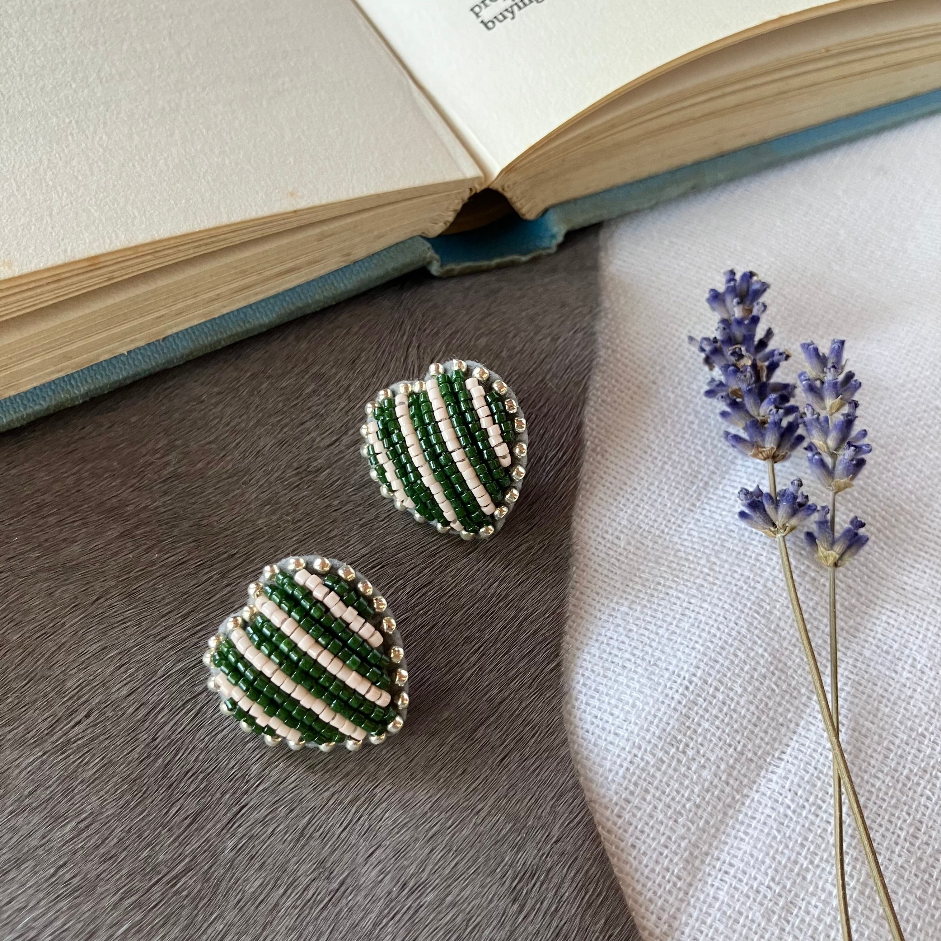 周りはシルバーのビーズで囲んで、少しキラッと感をプラスしています。