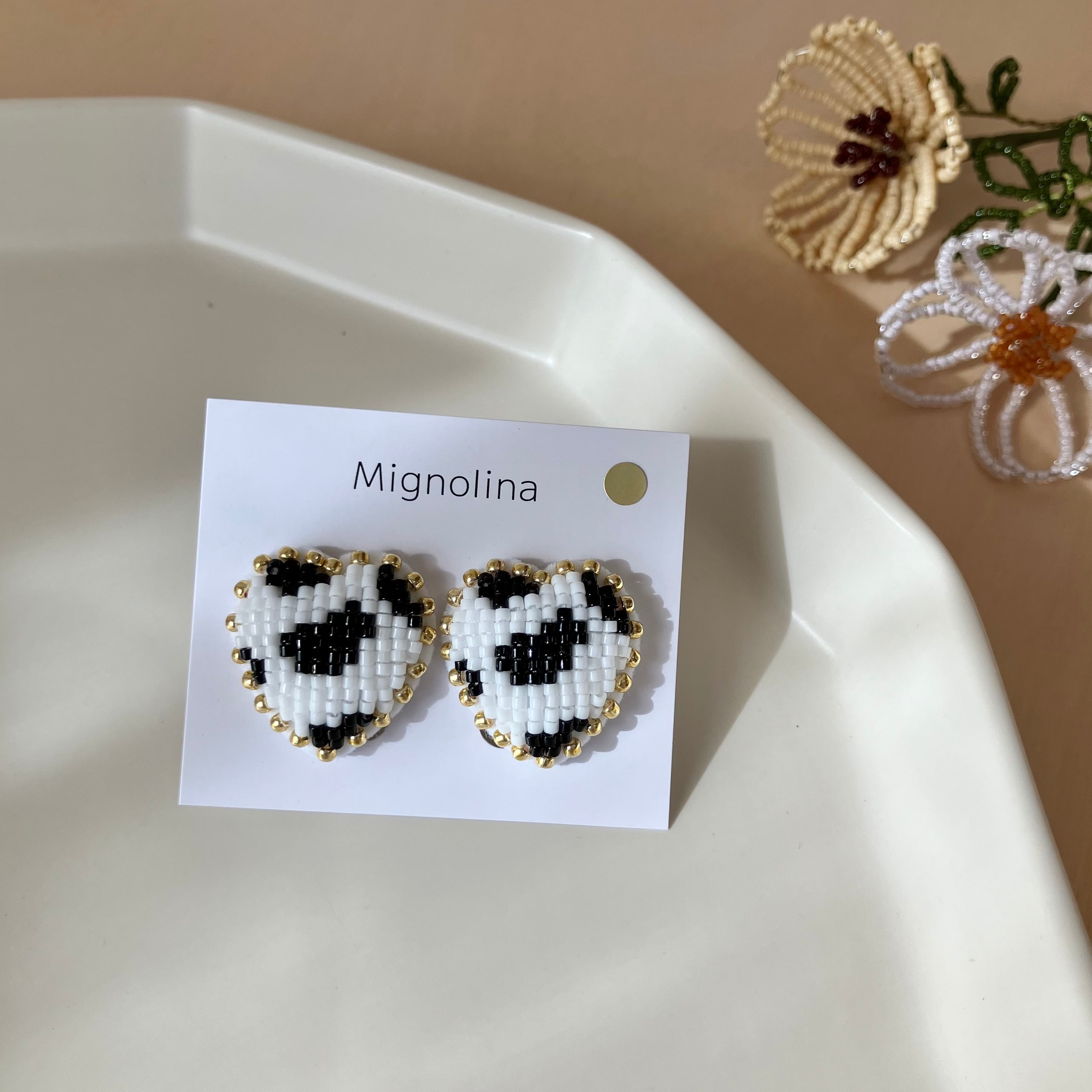 周りはゴールドの丸っとしたビーズで囲んでいます。