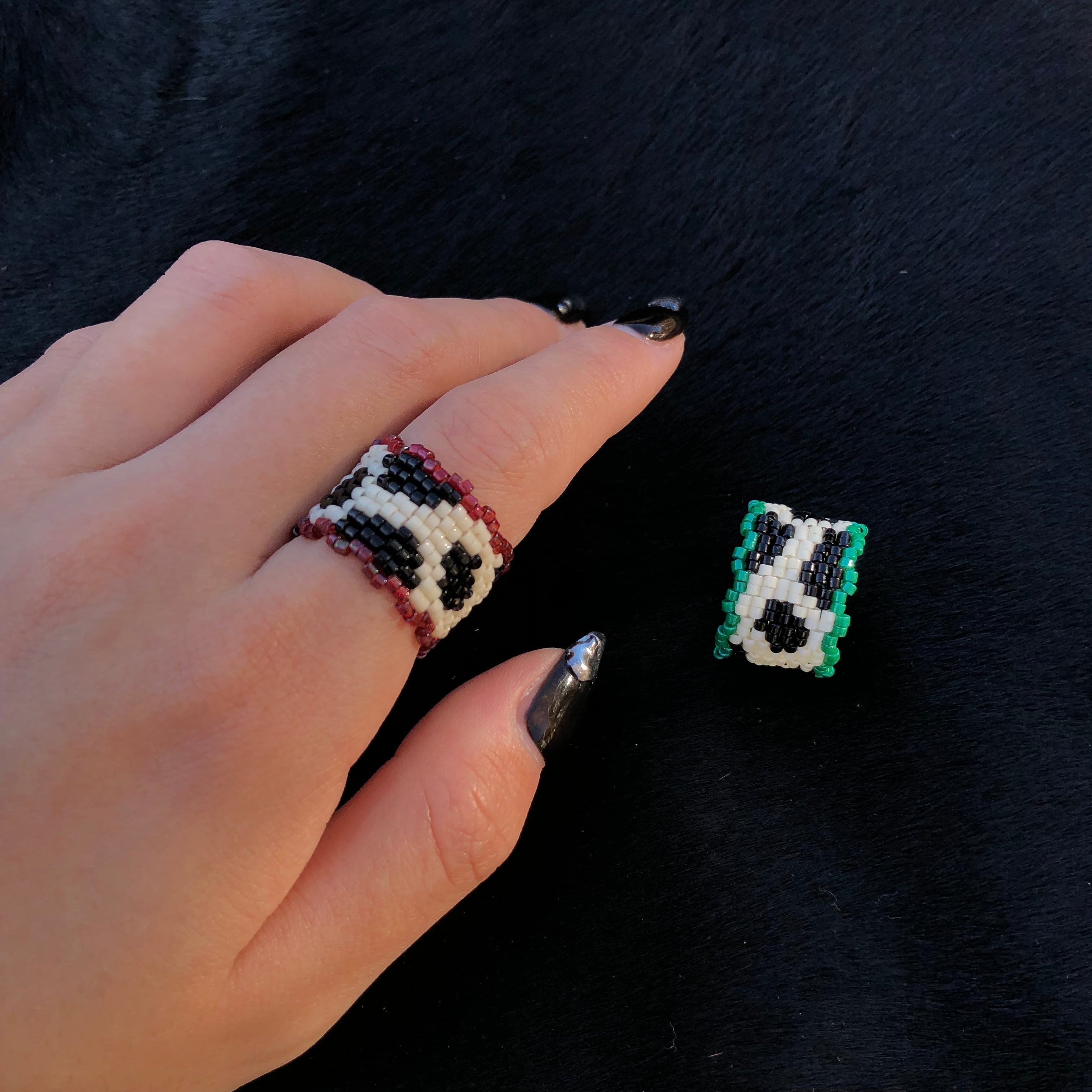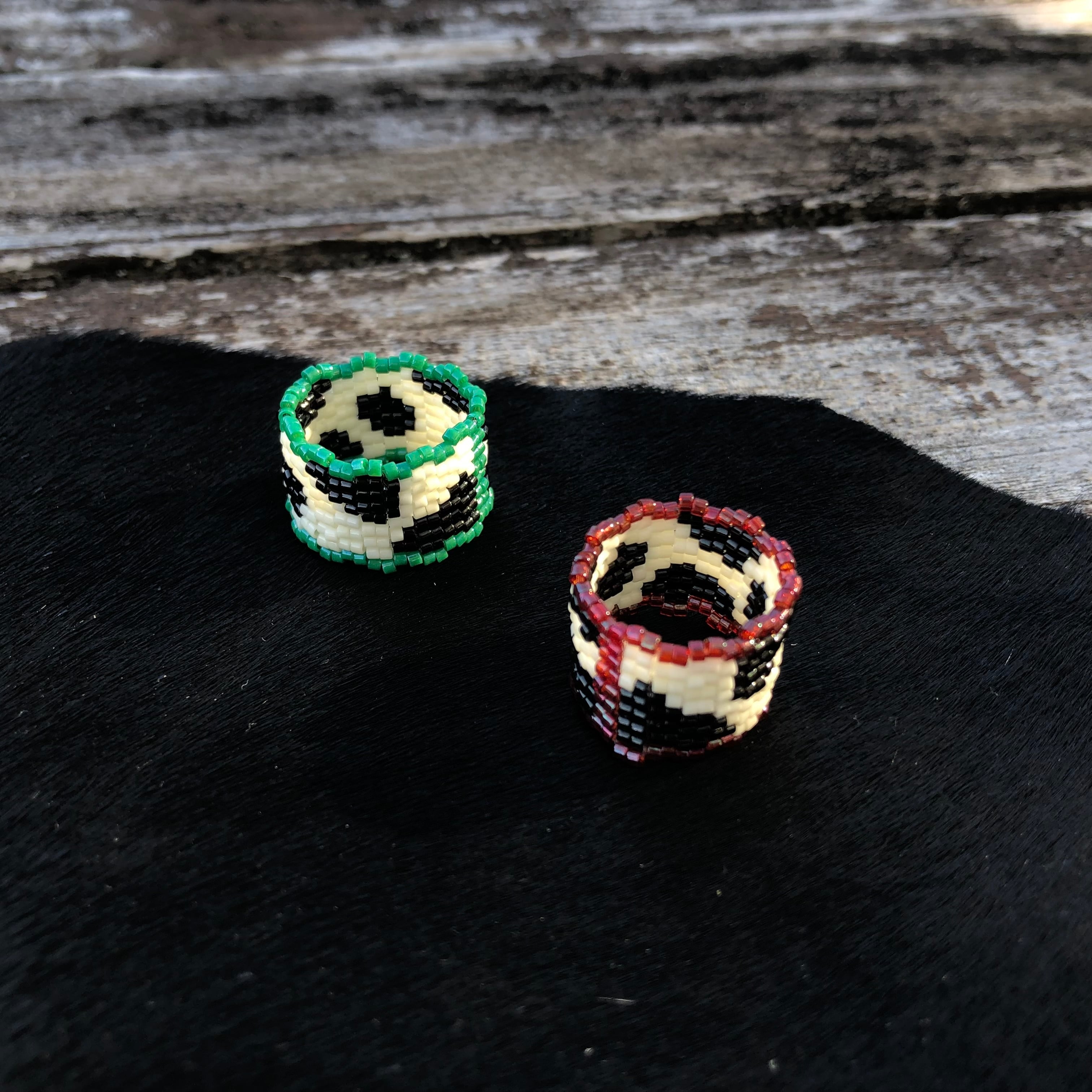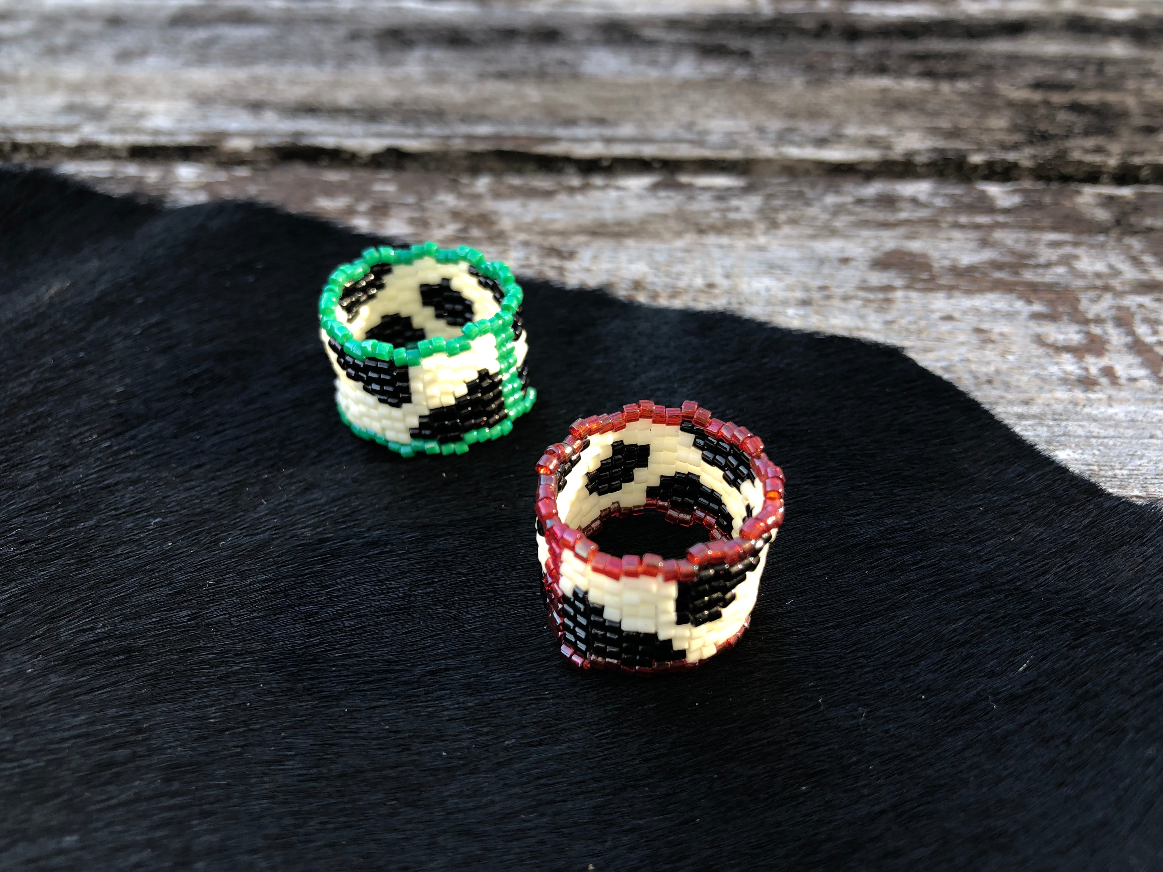 ポップでレトロな牛柄のビーズリング