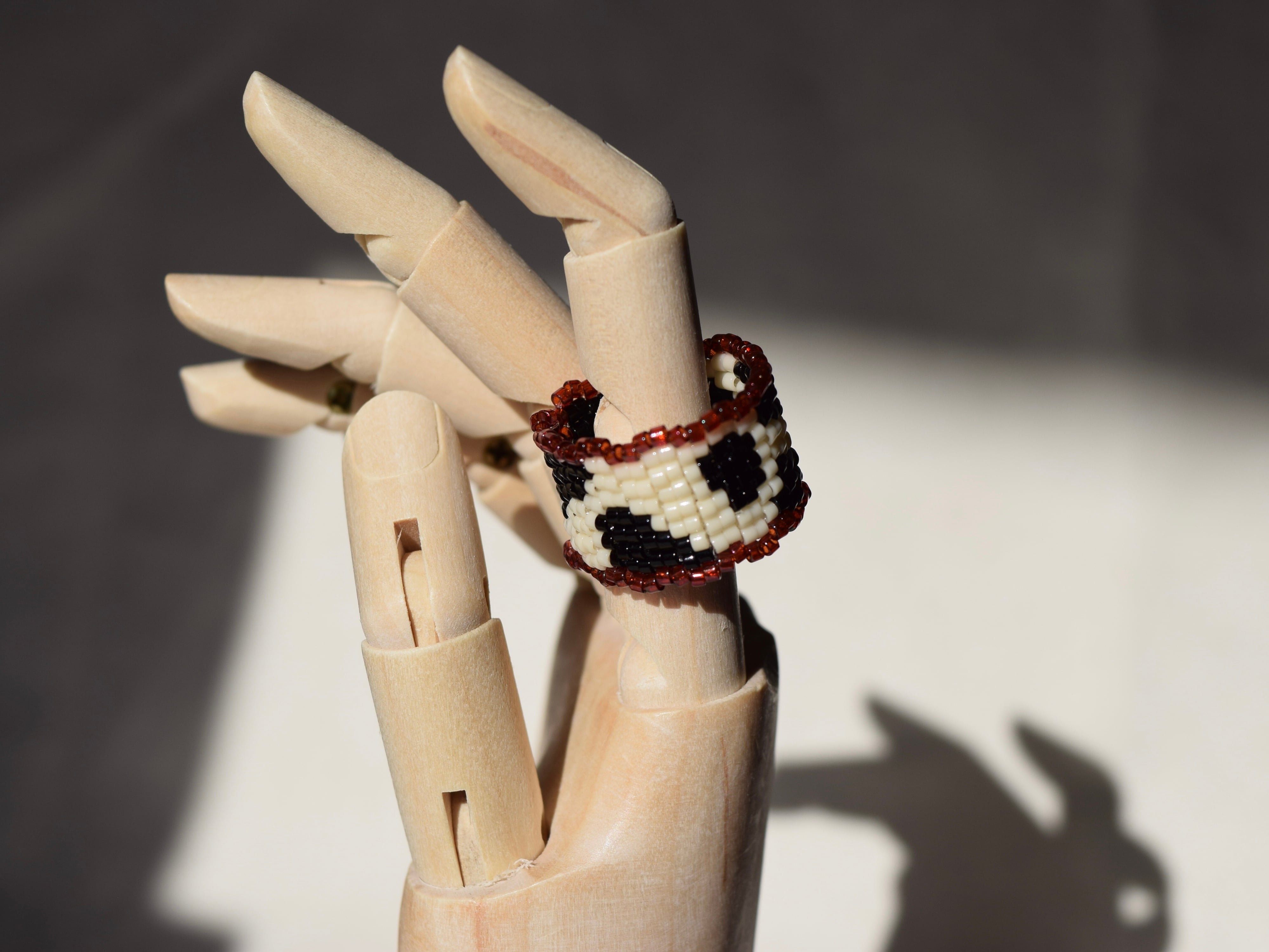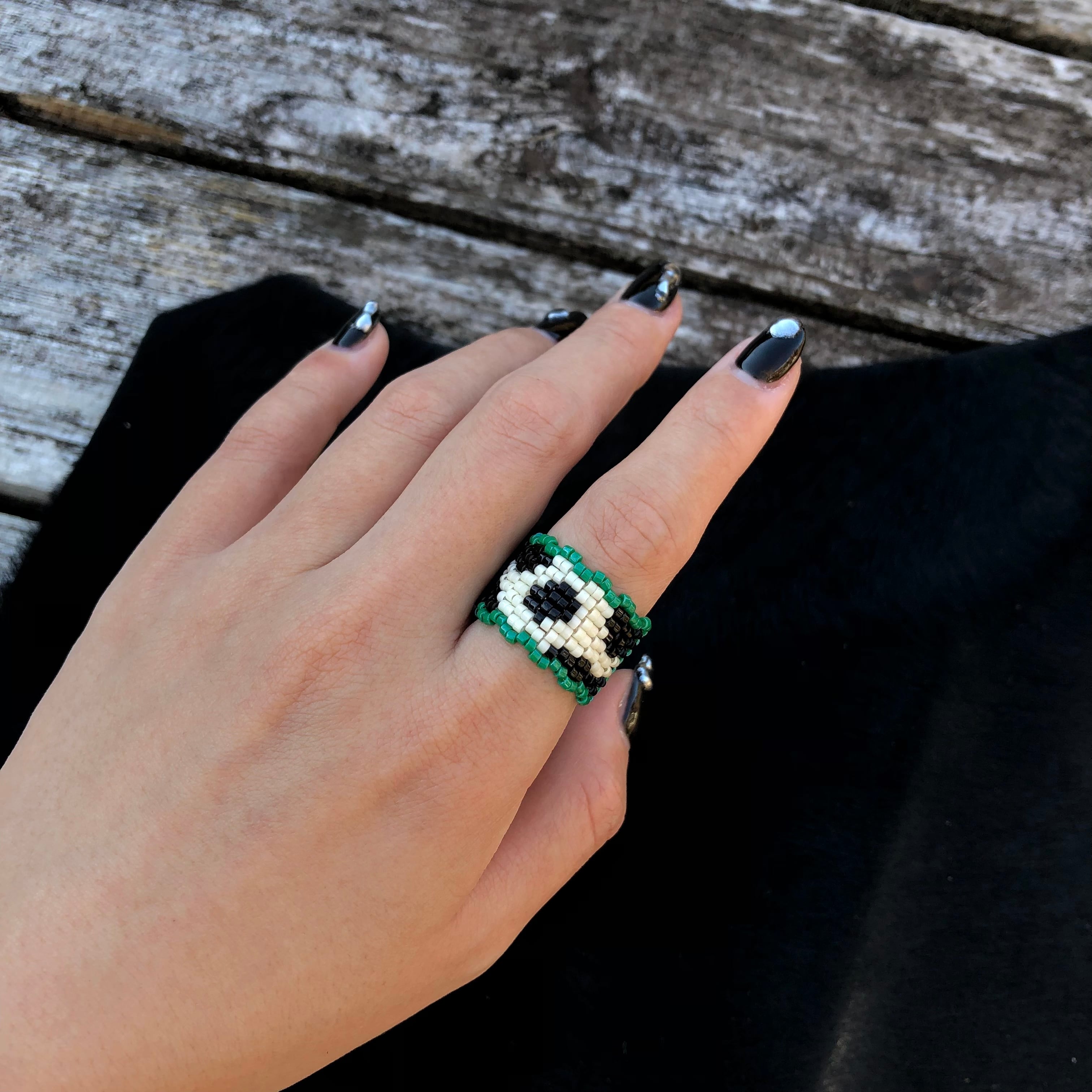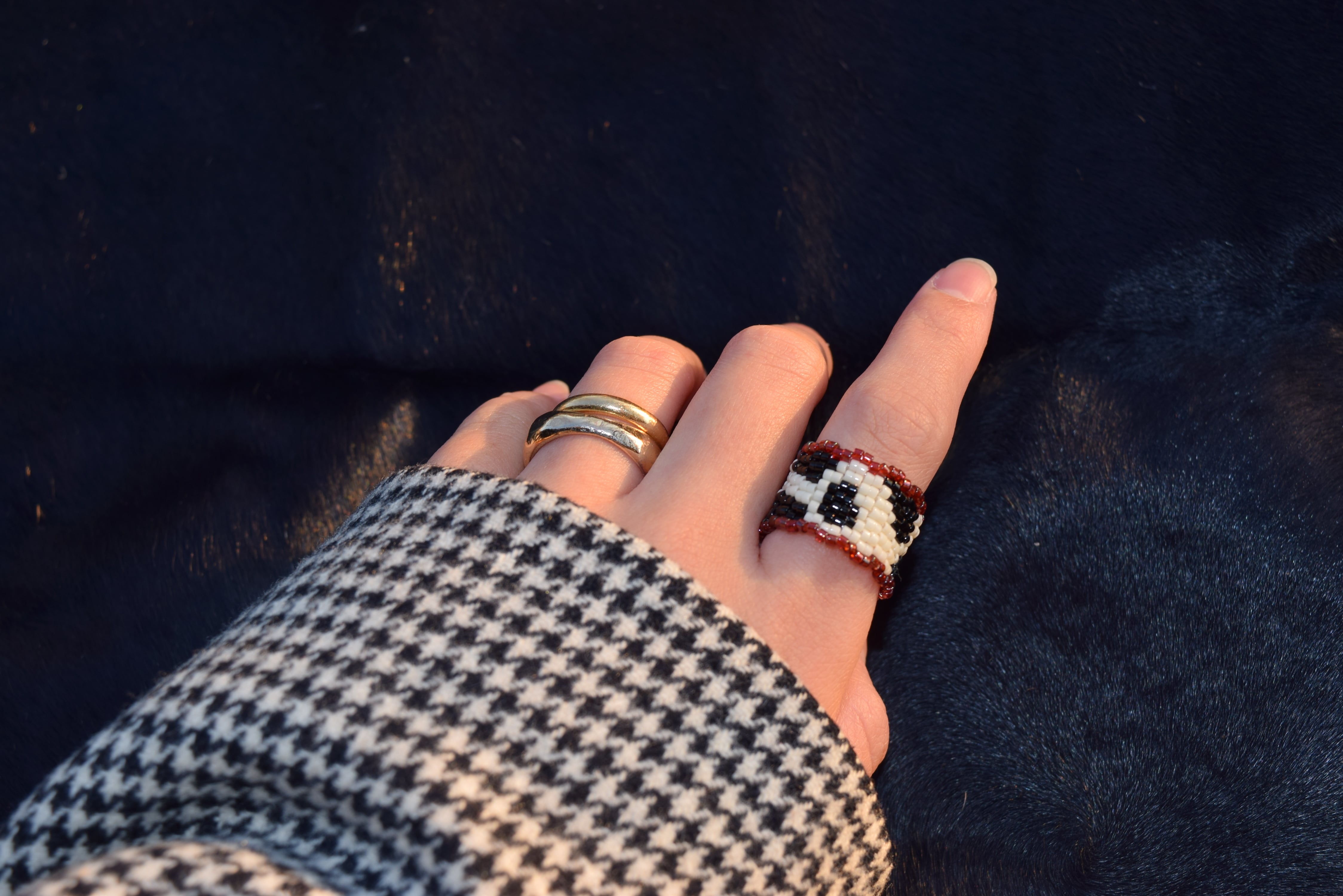 ポップでレトロな牛柄のビーズリング