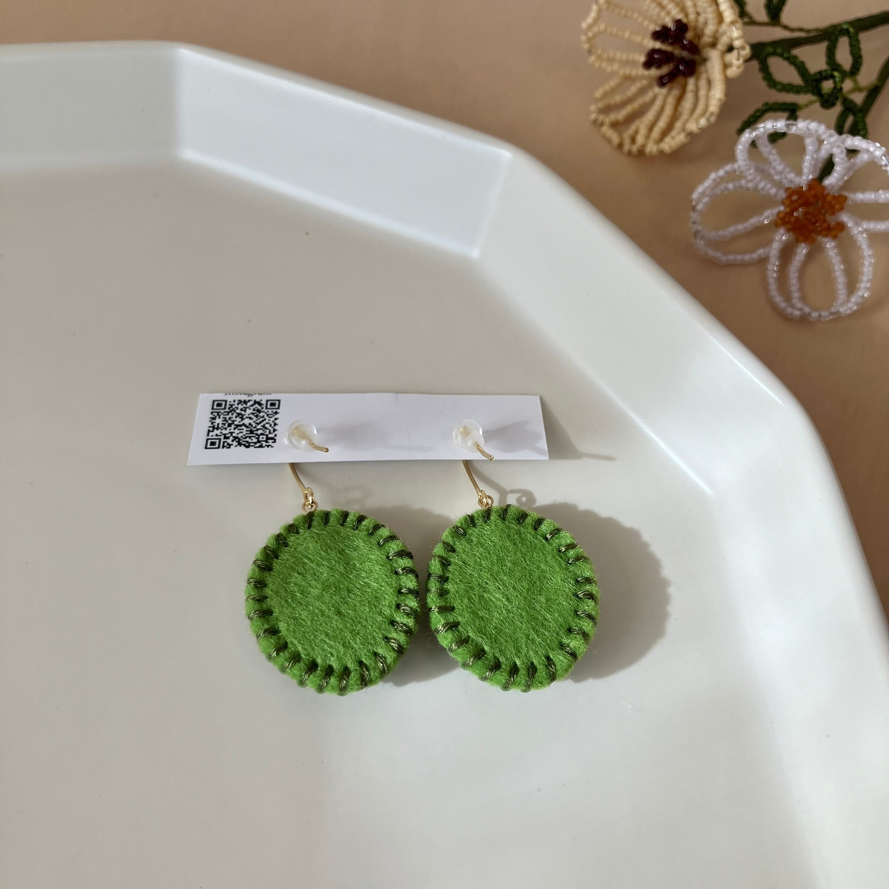 まるい耳飾り、揺れるタイプです。