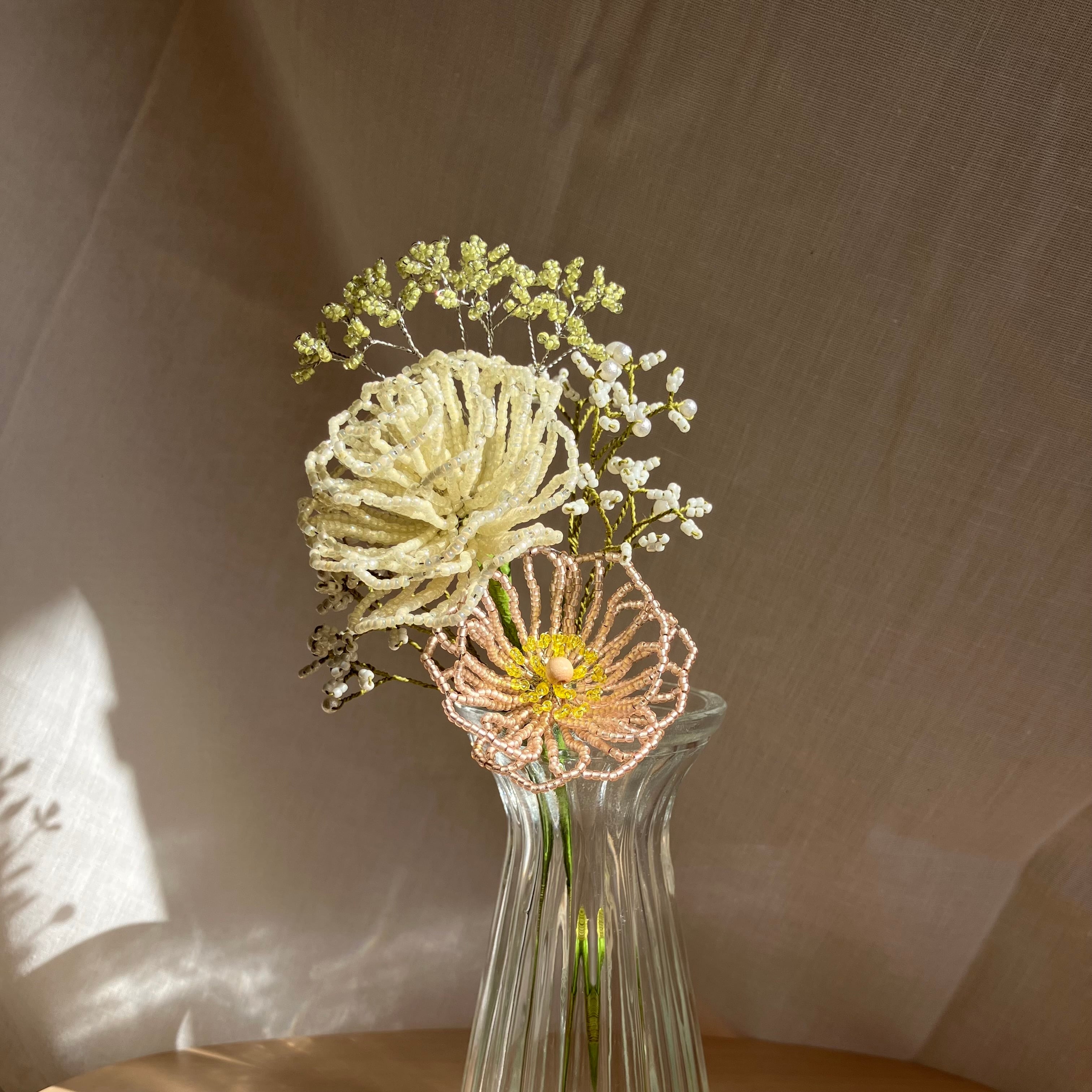 小さなビーズから作る、枯れないお花です。