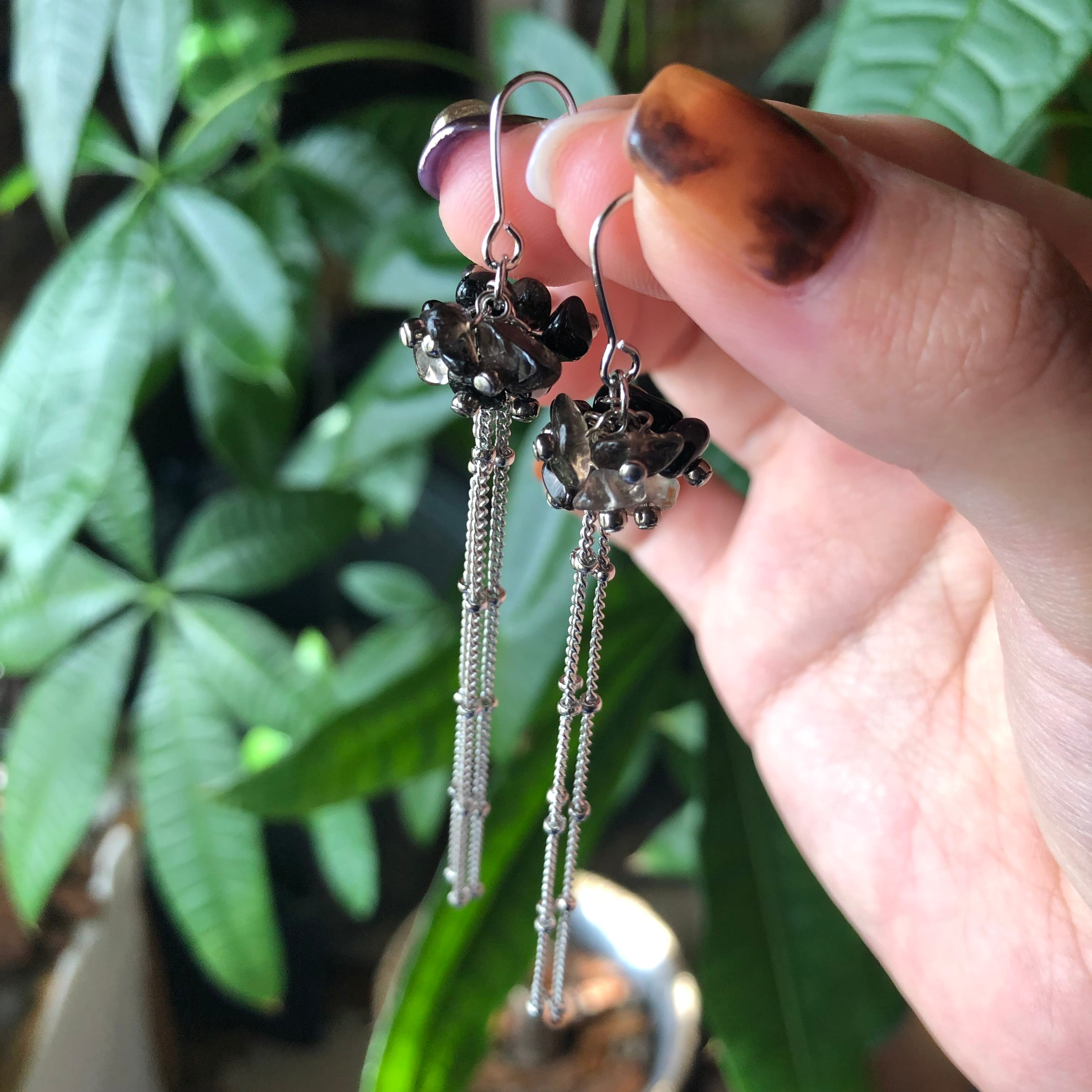 小さな天然石をたくさん使った流れ星のようなピアスです