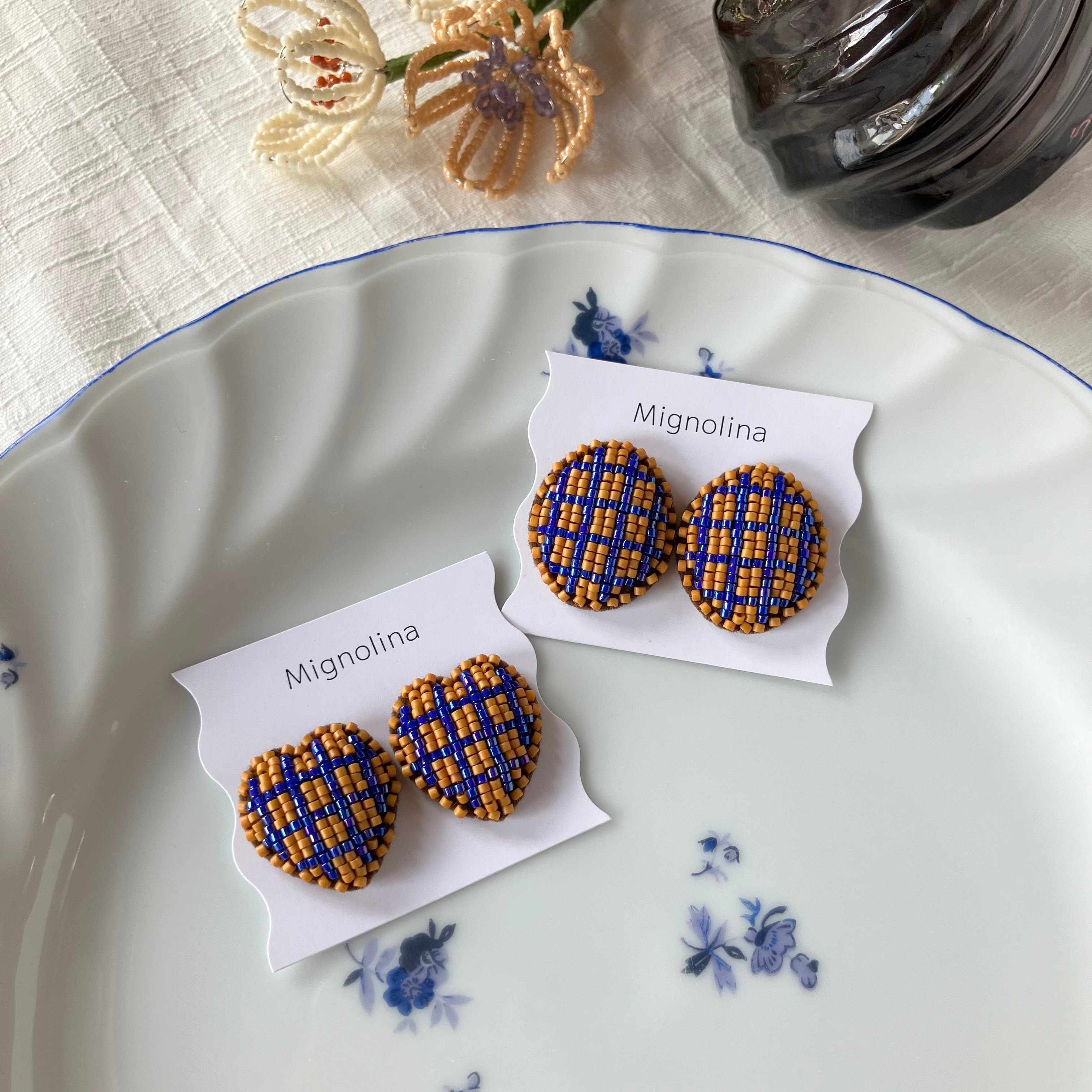 こっくりしたキャラメルカラーのブラウンと、濃いネイビーのビーズを合わせたデザインにしてみました!